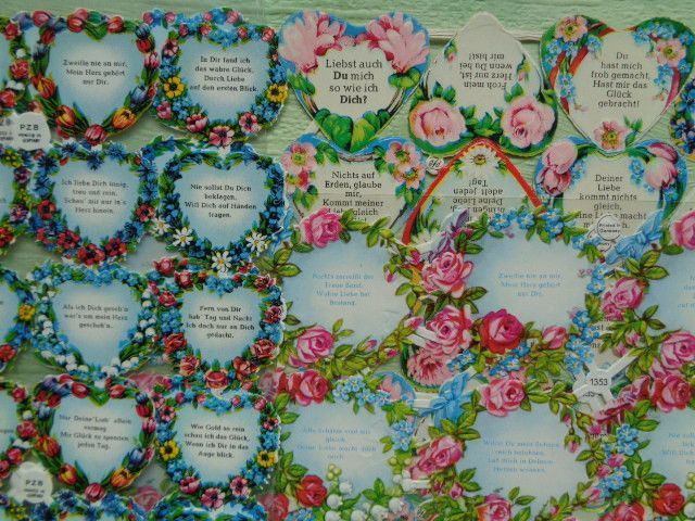 Paul Zöcke Berlin Glanzbilder PZB 1159 1219 1245 1353 Verse Sprüche Herzen Blumen