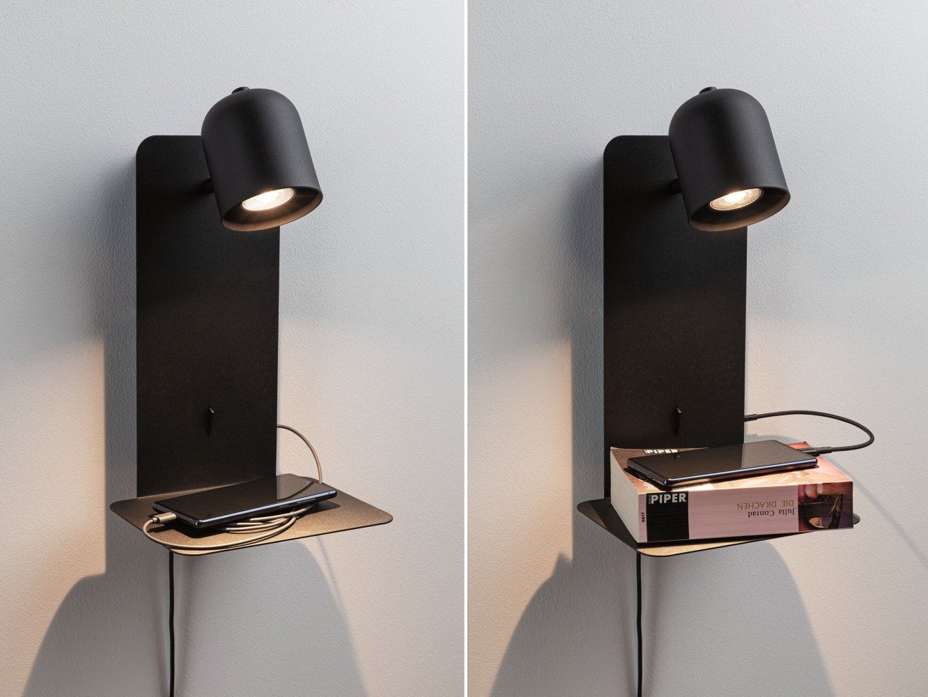 Paulmann 71099 Wandleuchte Malena USB C schwarz matt GU10