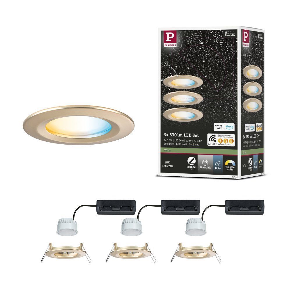 Paulmann 92445 LED Einbauleuchte Nova Coin 3er-Set Zigbee Tunable White Gold matt IP4