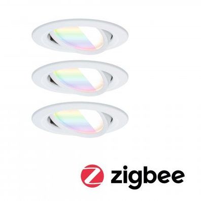 • Paulmann 92433 LED Einbauleuchte Nova Coin 3er-Set Zigbee RGBW Weiß matt