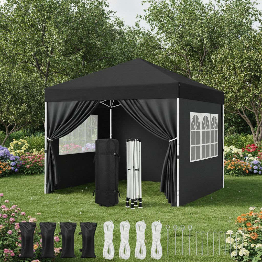 Pavillion Faltpavillion Partyzelt Pop up Schwarz 3x3 Meter