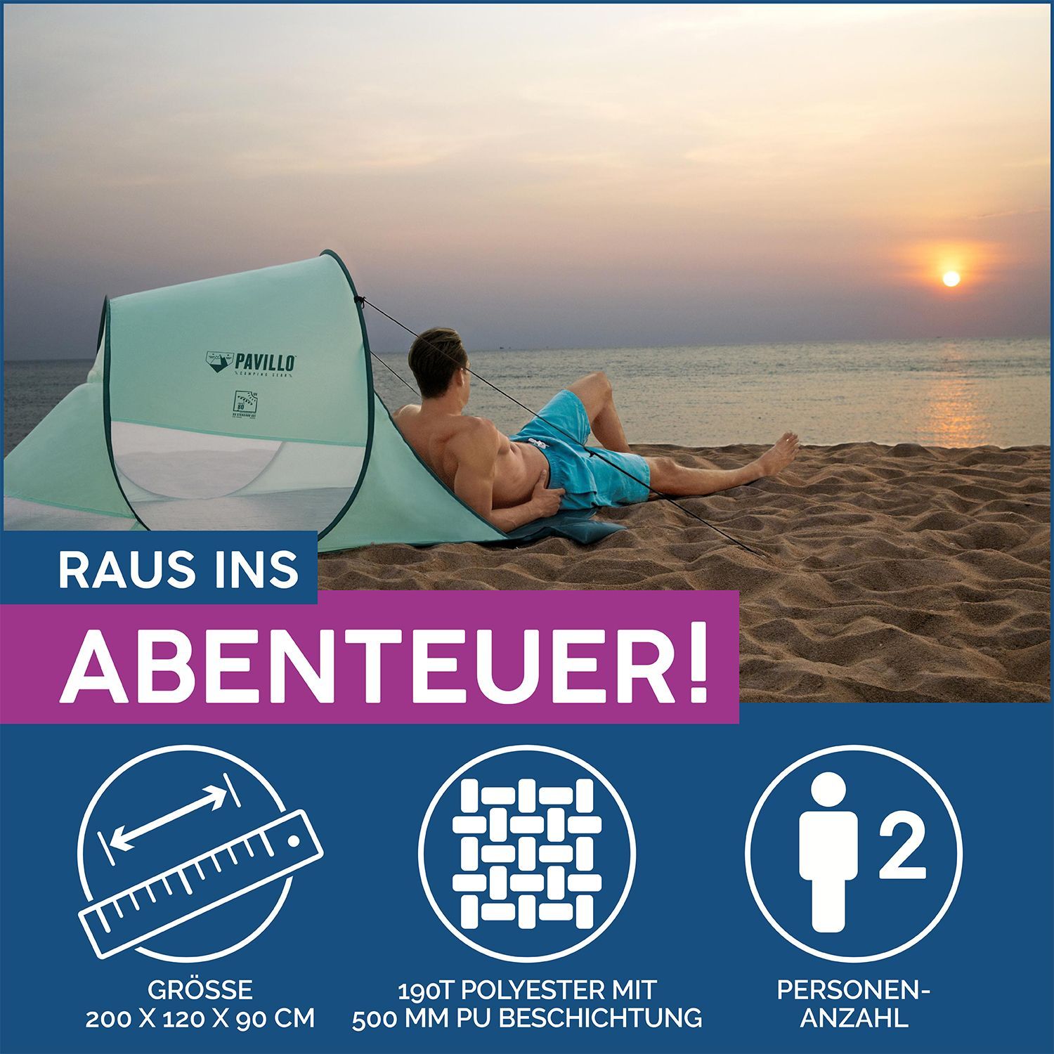 Bestway Pavillo™ Pop-Up Strandmuschel Beach Quick 2 200 x 120 x 90 cm