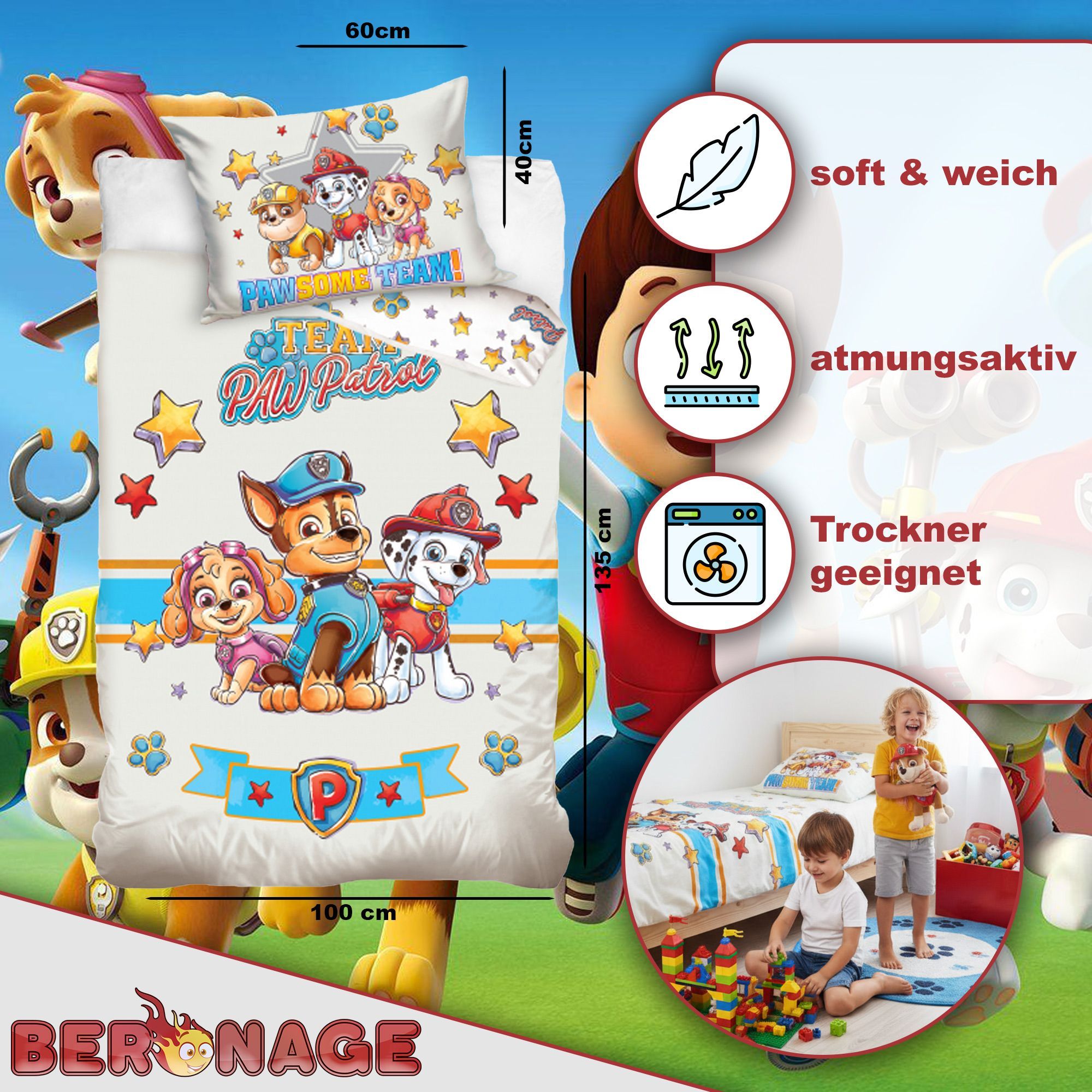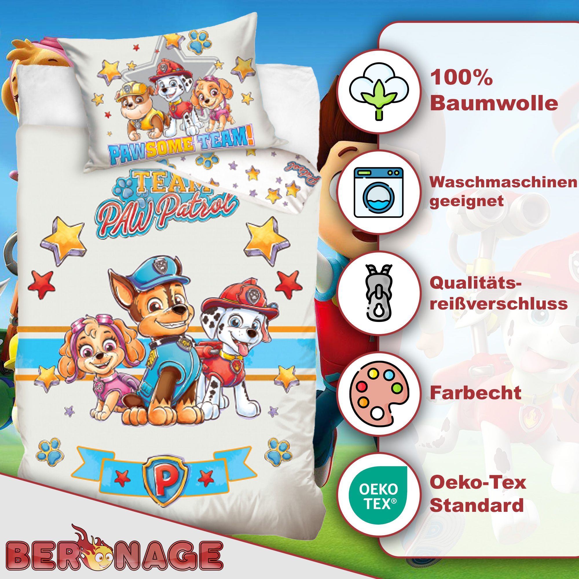 Paw Patrol Baby Kleinkind Stars Bettwäsche Linon / Renforcé