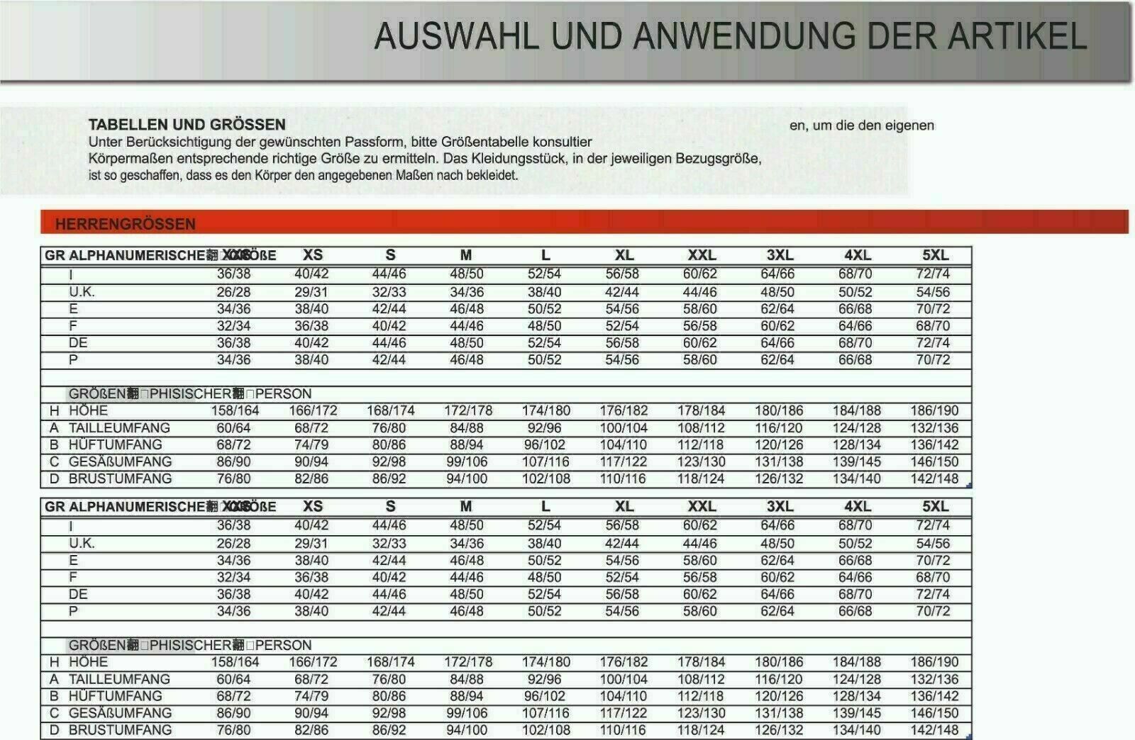 3XL, 4XL und 5XL