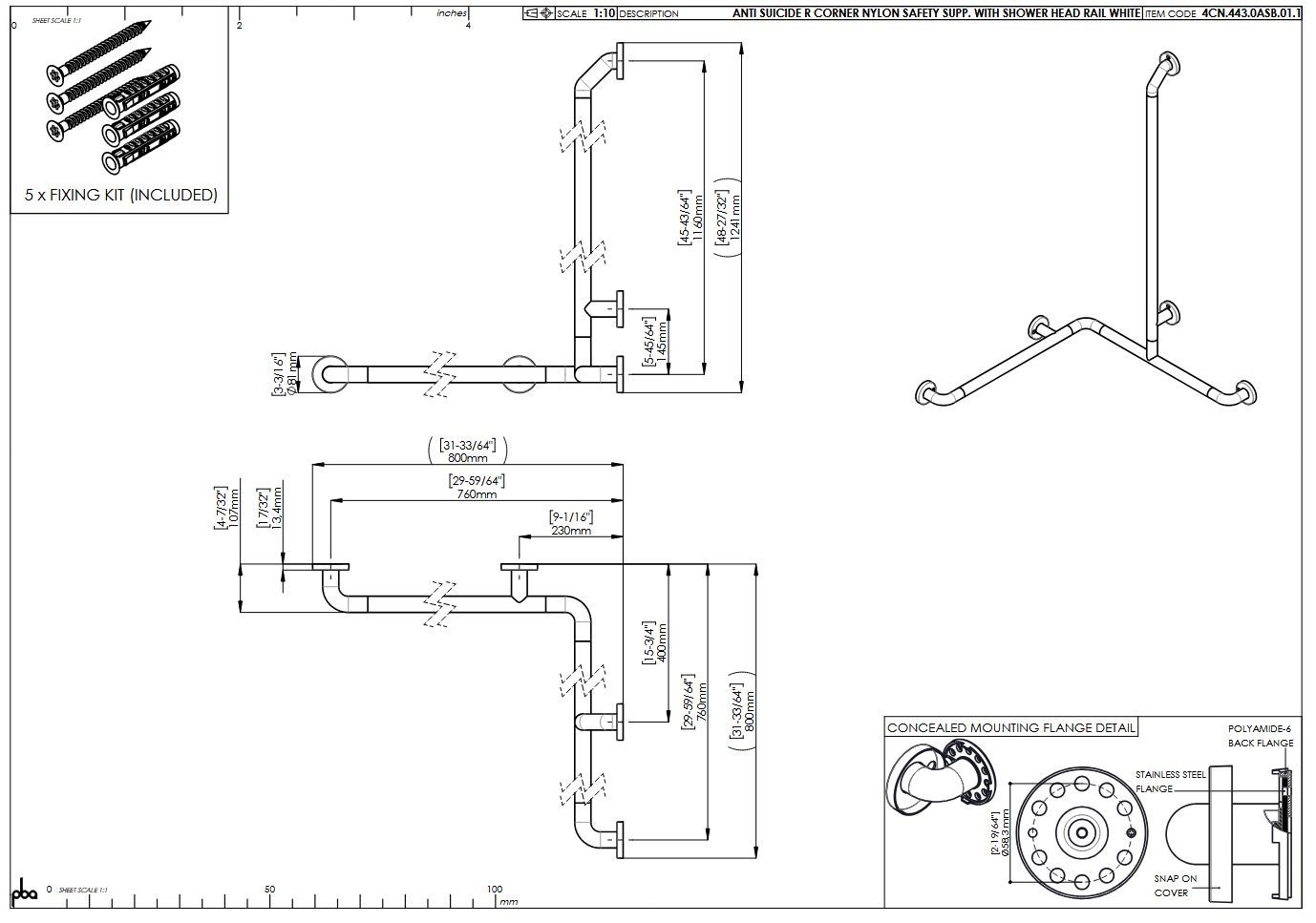 pba 01 Duschhandlauf AS rechts 760x760, Anti-Suizid, BH-Stange 1160mm, aus Nylon