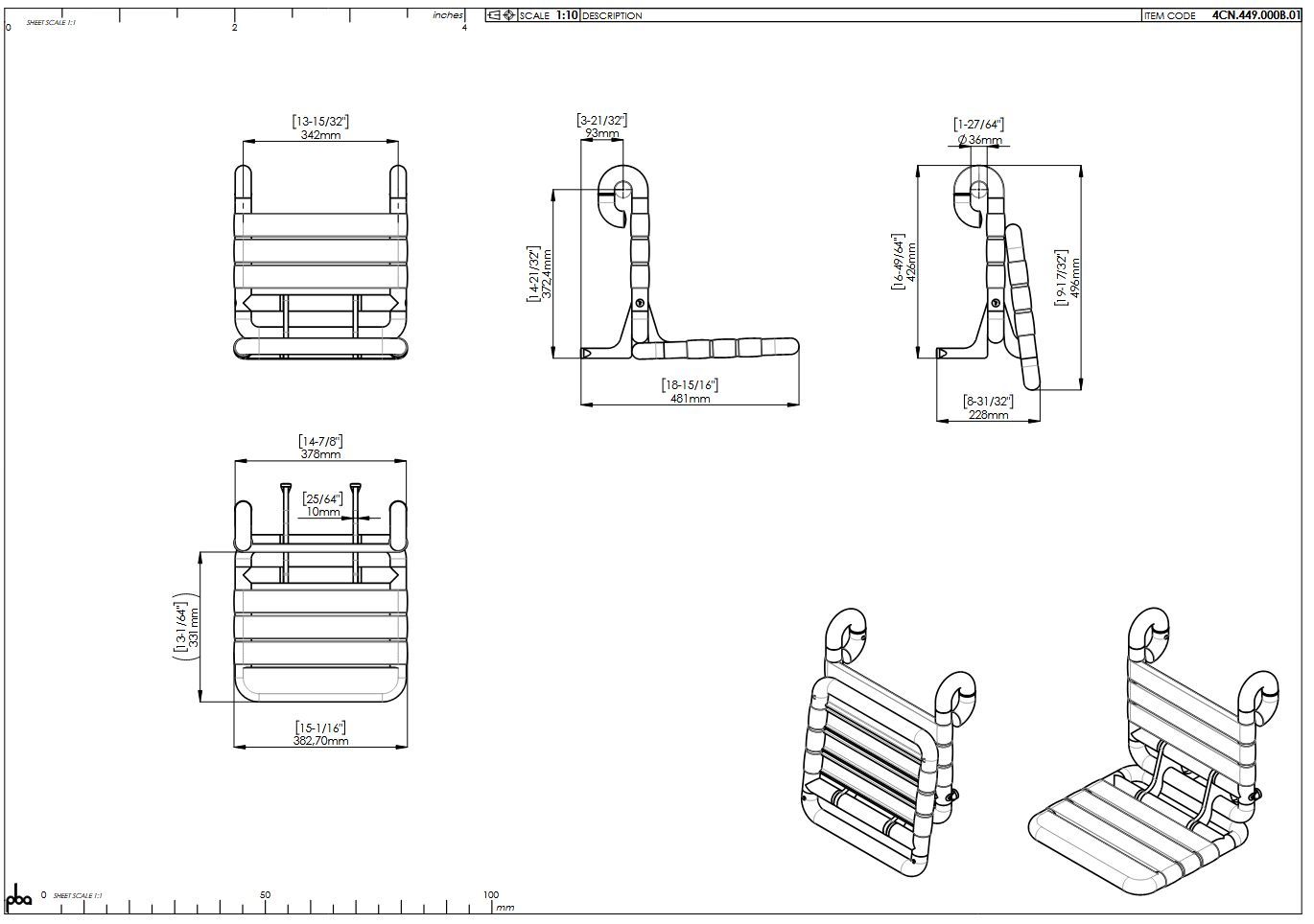 pba 01 Duschsitz, einhäng 380x480x430mm Sitzfläche klappbar, aus Nylon