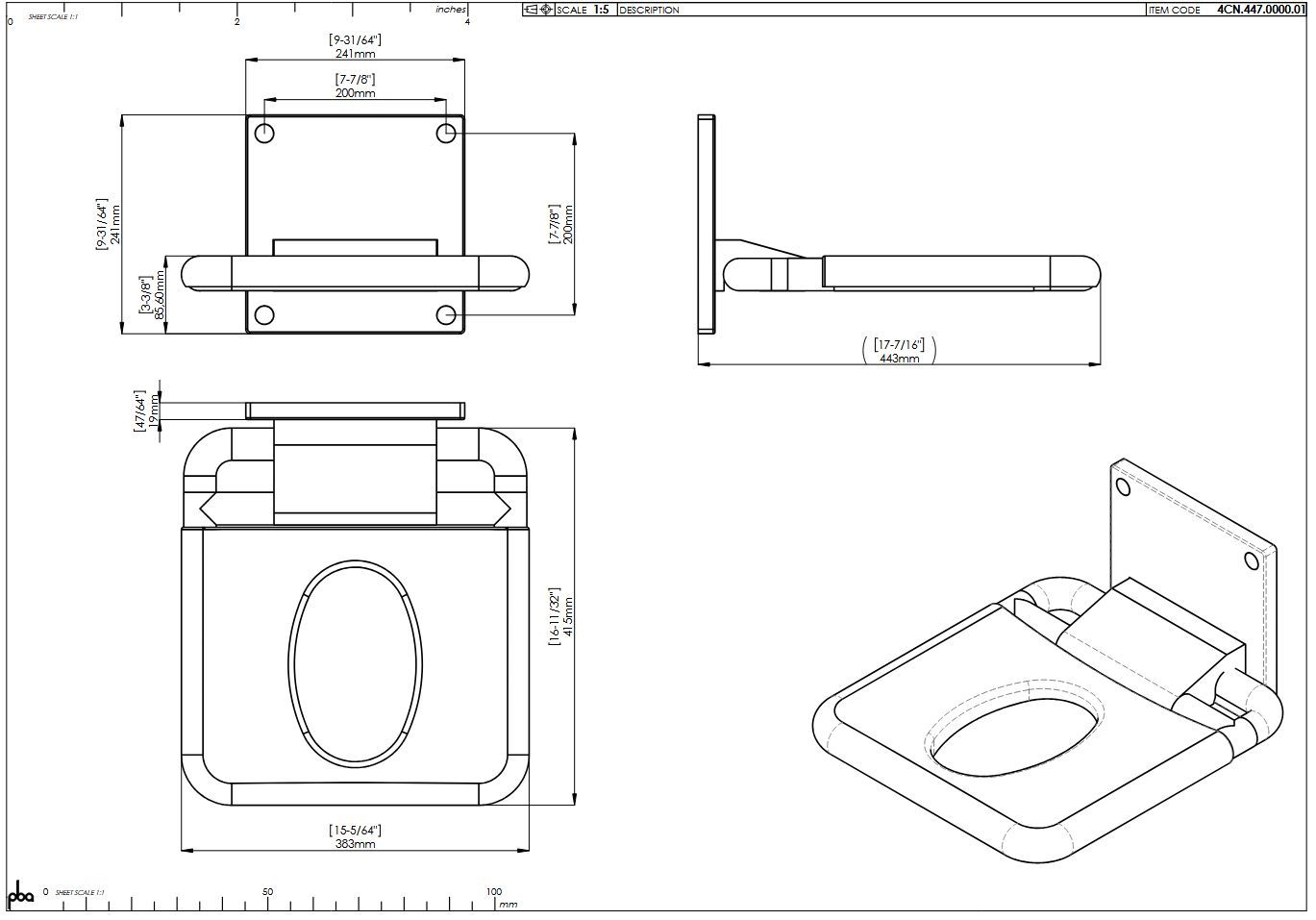 pba 01 Duschsitz mit Hygieneöffnung klappbar, aus Nylon, 380x445mm