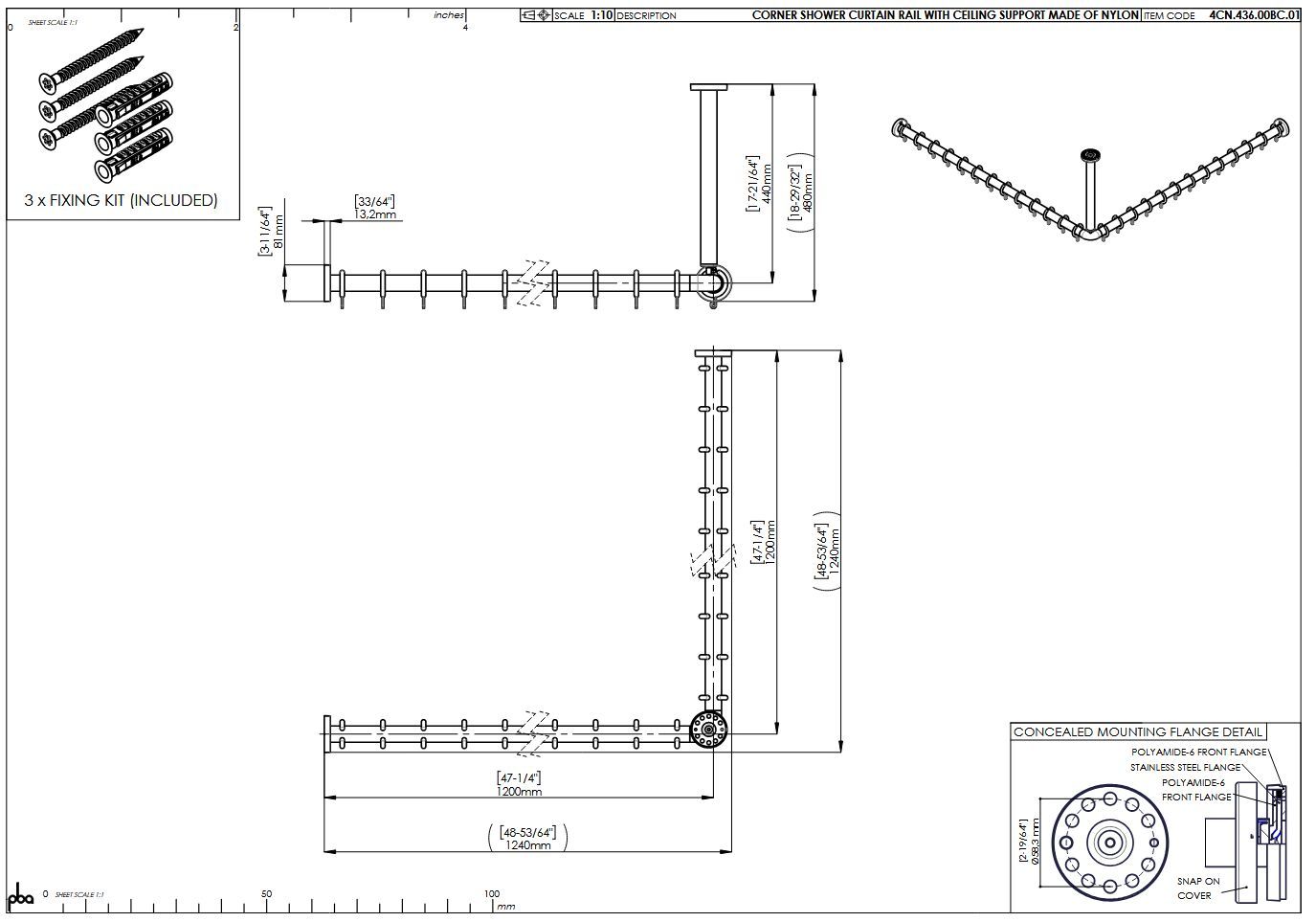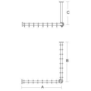 pba 01 Duschvorhangstange, 1200x1200 X440mm L- Form mit DA aus Nylon