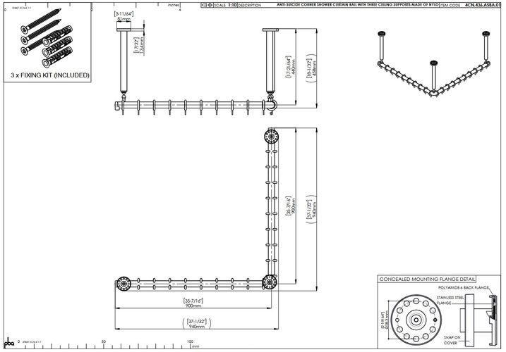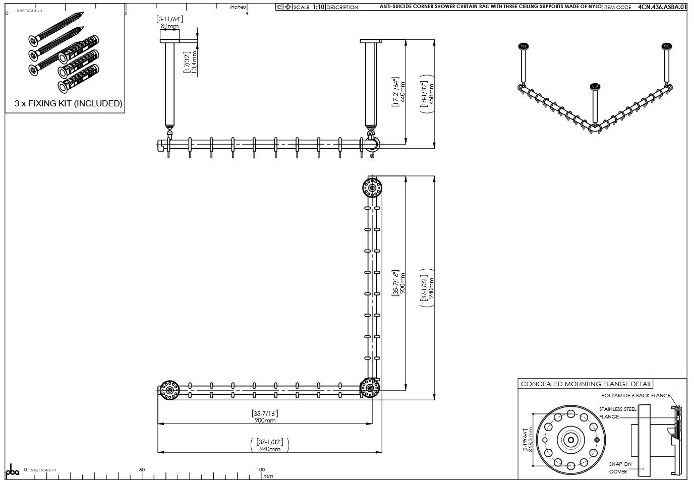 pba 01 Duschvorhangstange AS 900X900X440 aus Nylon