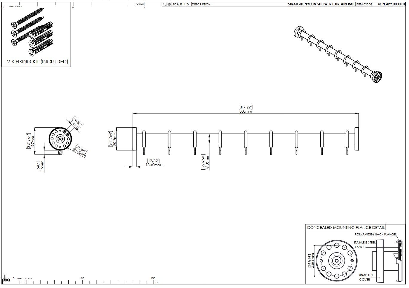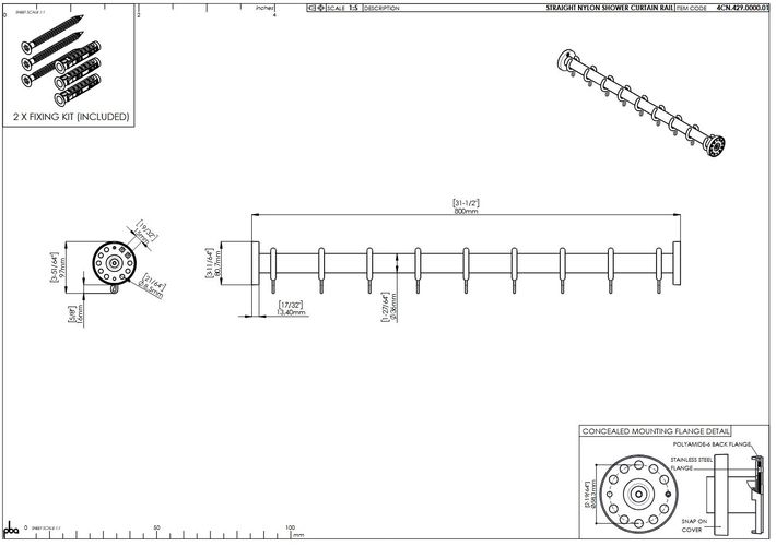 pba 01 Duschvorhangstange gerade 800mm, aus Nylon