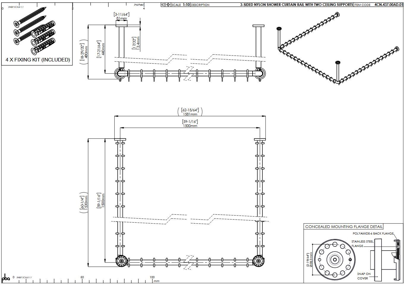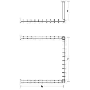 pba 01 Duschvorhangstange, U 1500x1500mm U- Form mit 2 DA 440mm aus Nylon
