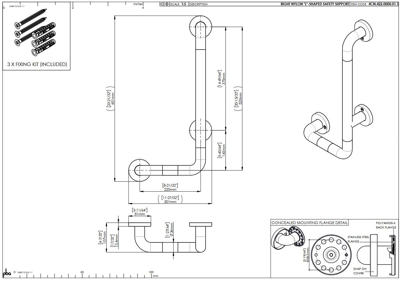 pba 01 Haltegriff mit PRH R 500x750mm, L-Form, aus Nylon