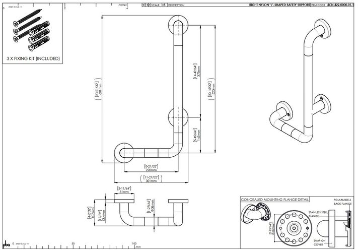 pba 01 Haltegriff rechts 400x1160mm, L-Form, aus Nylon