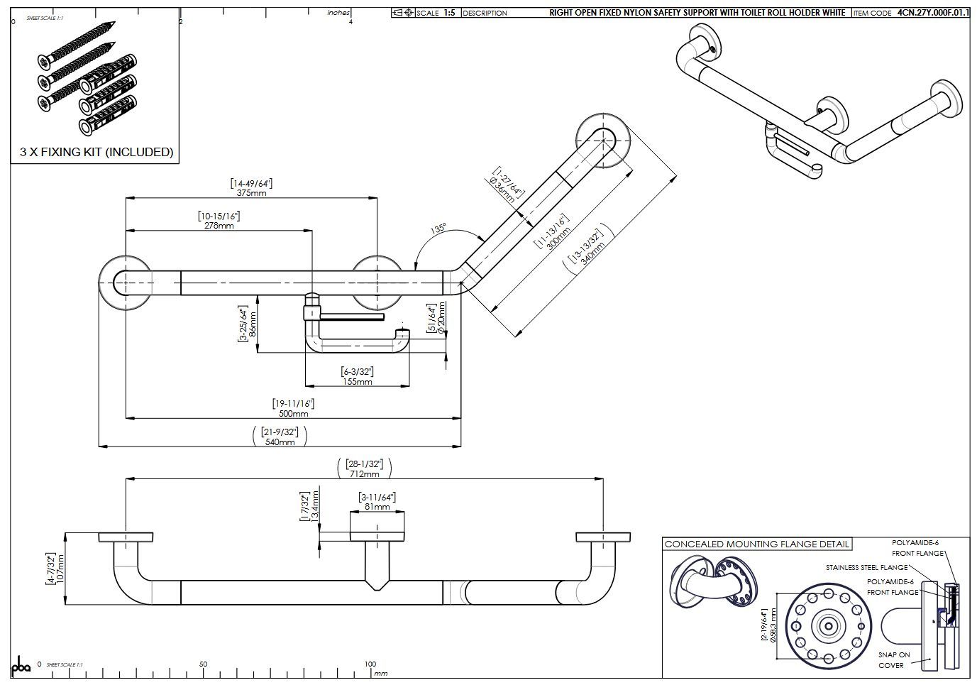 pba 01 Winkelgriff, R fest 500x300mm, feststehend, rechts, aus Nylon, mit PRH
