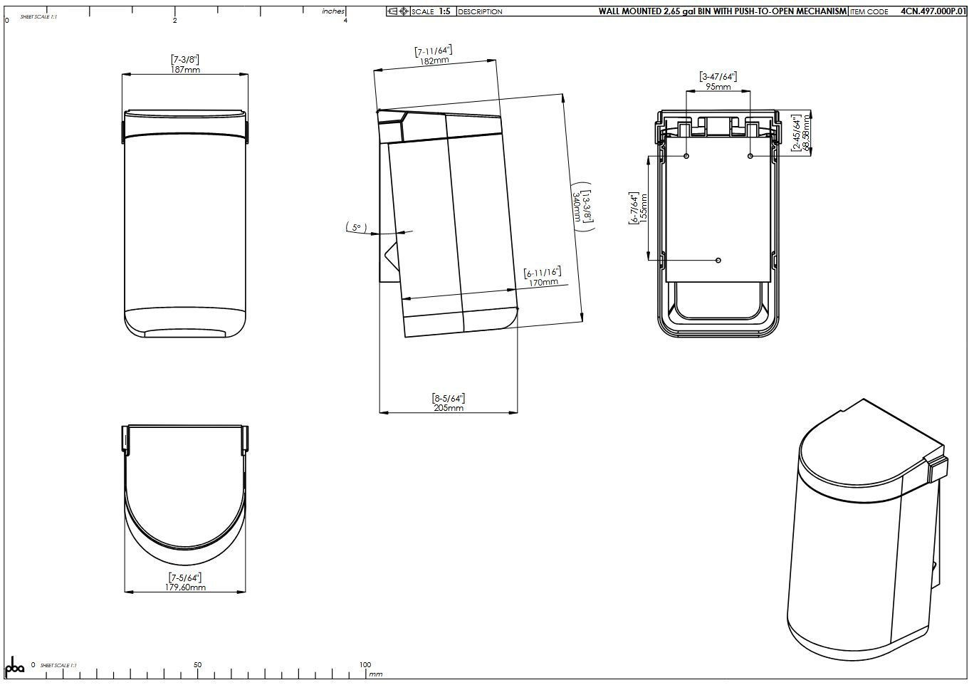 pba Abfallbehälter, Farbe Weiss 340x180x180mm