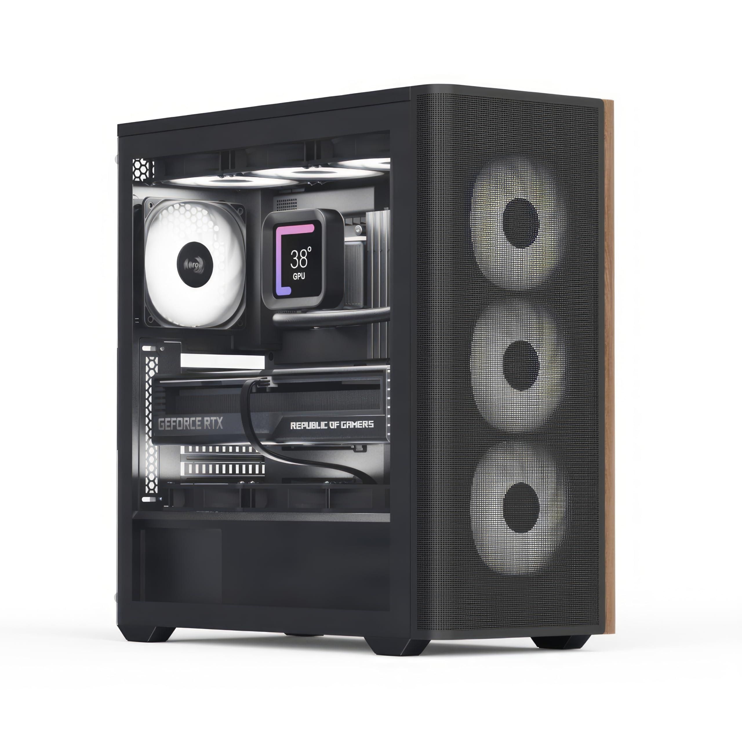PC AeroCool Midi Tower mit Holzfront und guter Beléftung