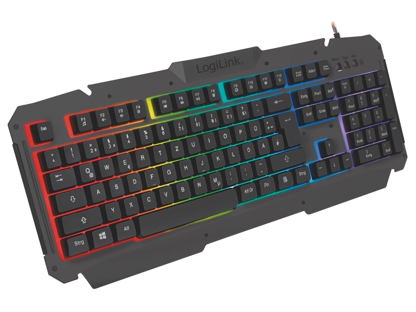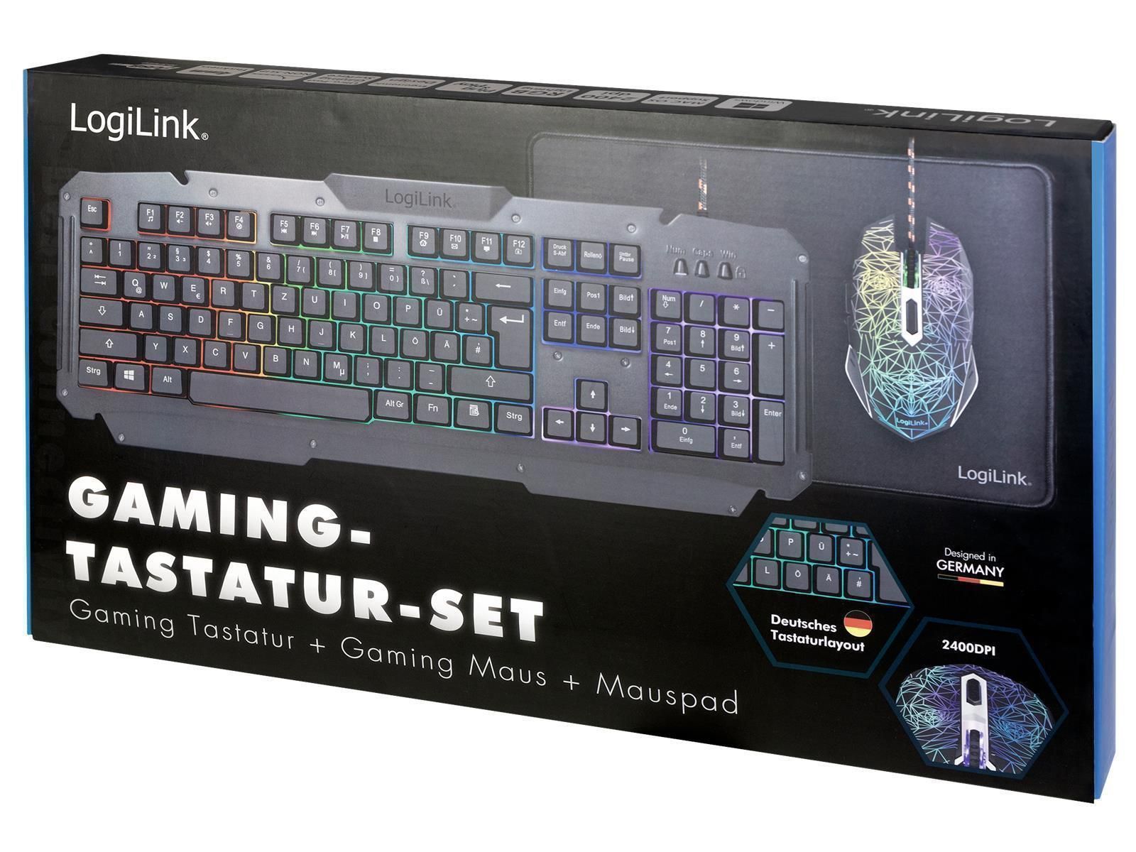LogiLink PC Gaming Set, Tastatur, Maus und Mauspad, LED Beleuchtung,