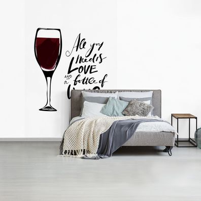 • Fototapete - 225x350 cm - Wein Zitat "all you need is love and a bottle of wine" mit