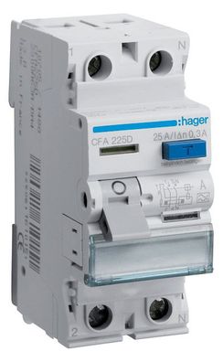 • Hager CFA225D Fehlerstromschutzschalter 2 polig 6kA 25A 300mA Typ A