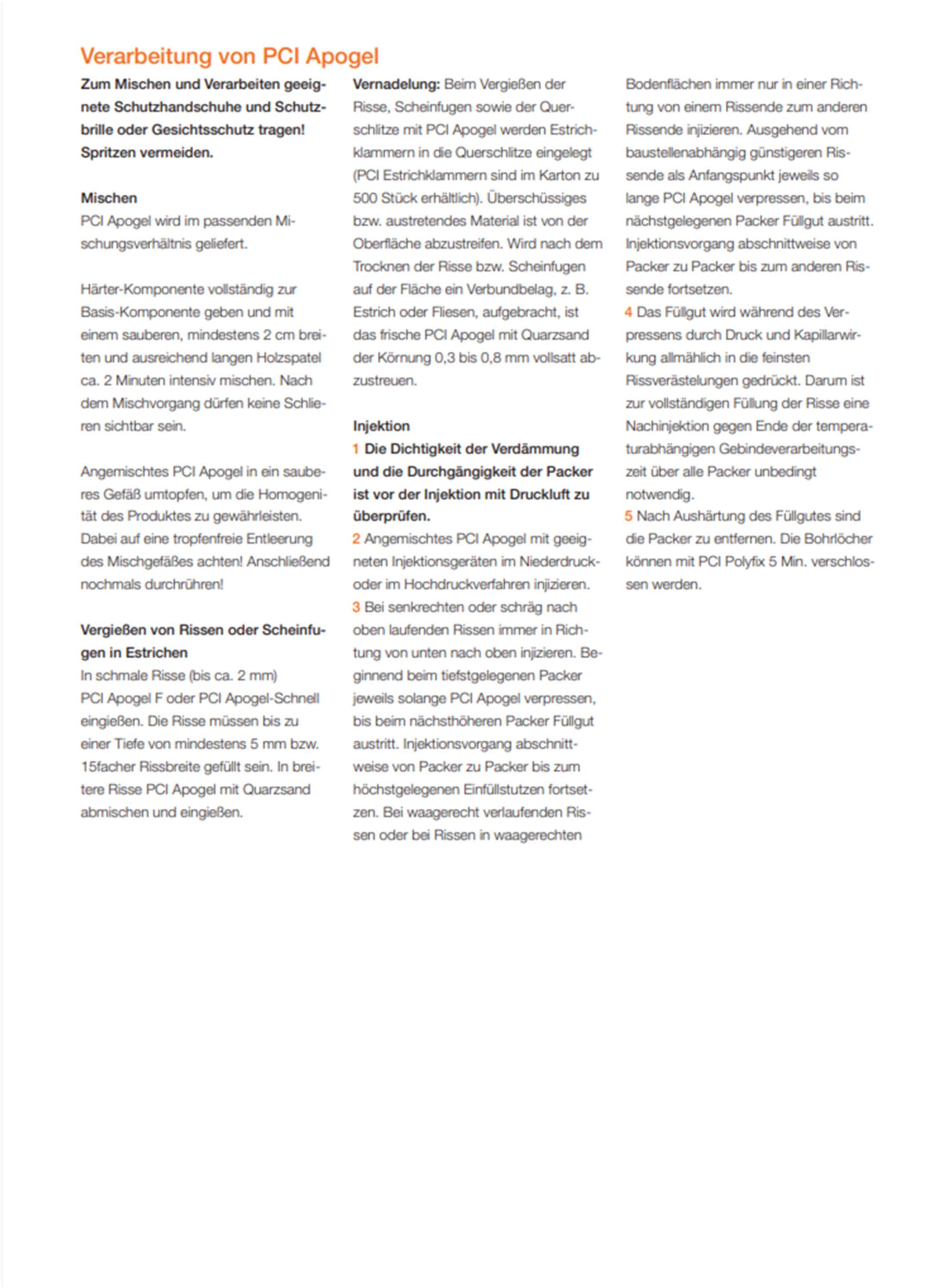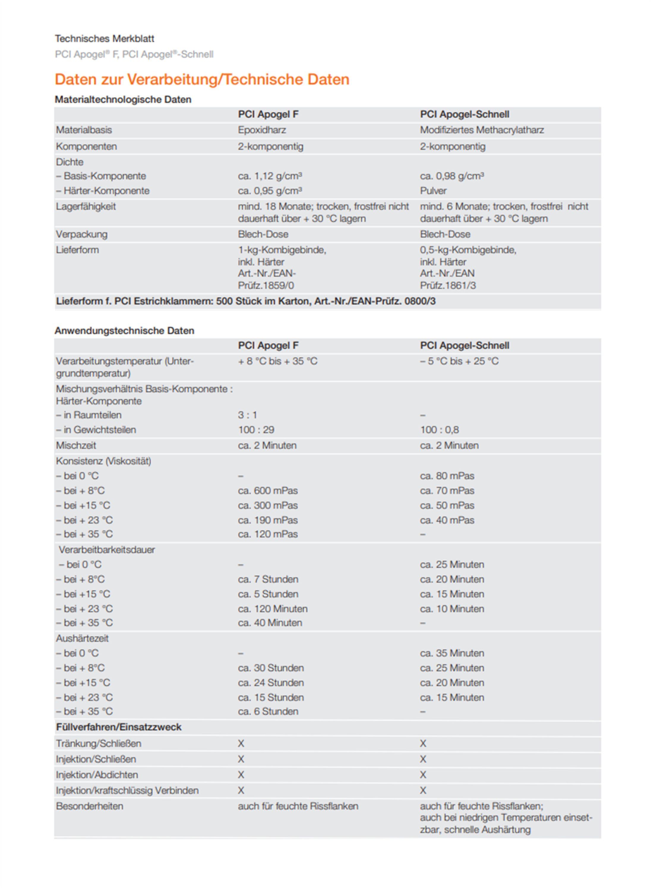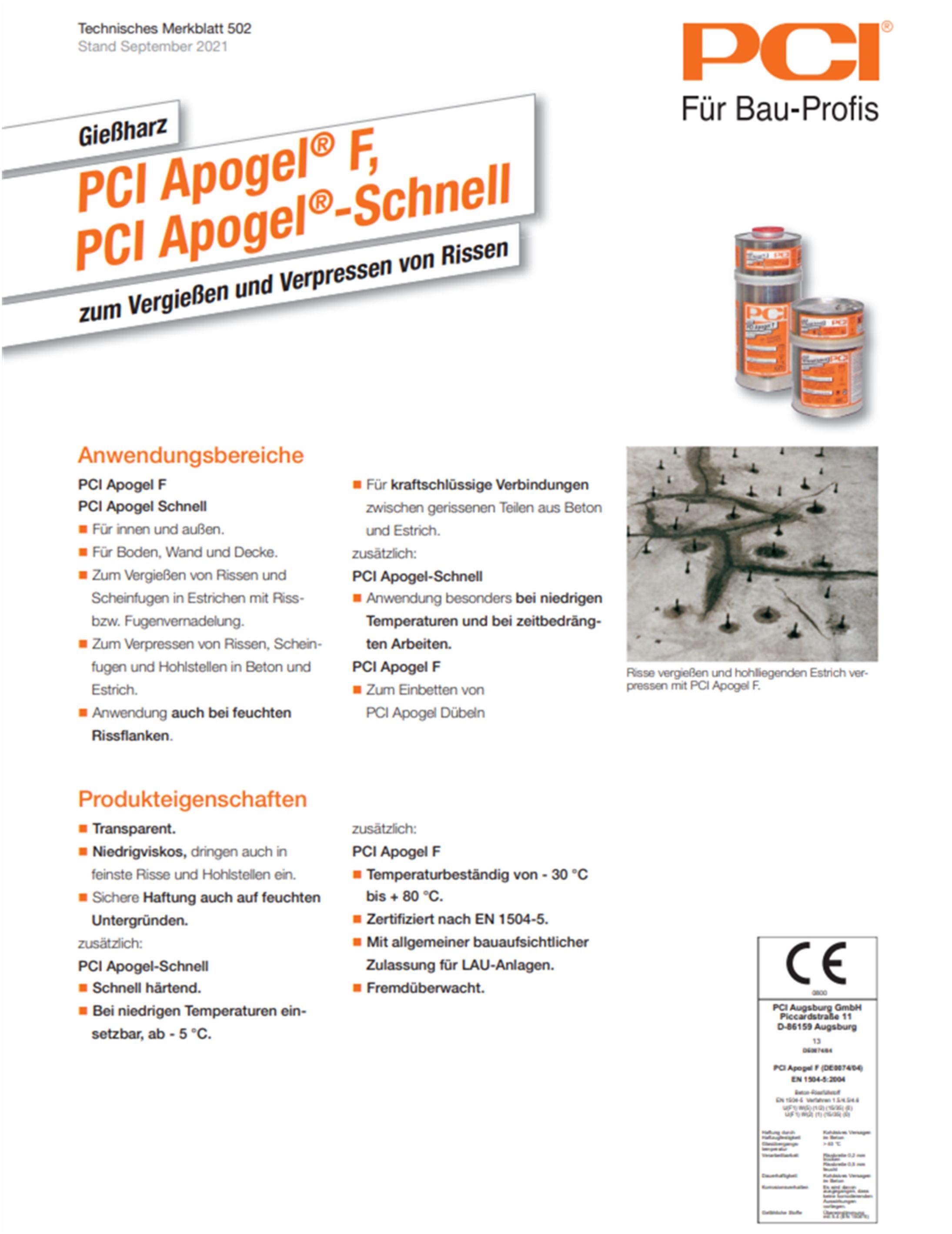 PCI PCI Apogel F 1 kg 2-k Gießharz zum Vergießen und Verpressen von Rissen in Beton