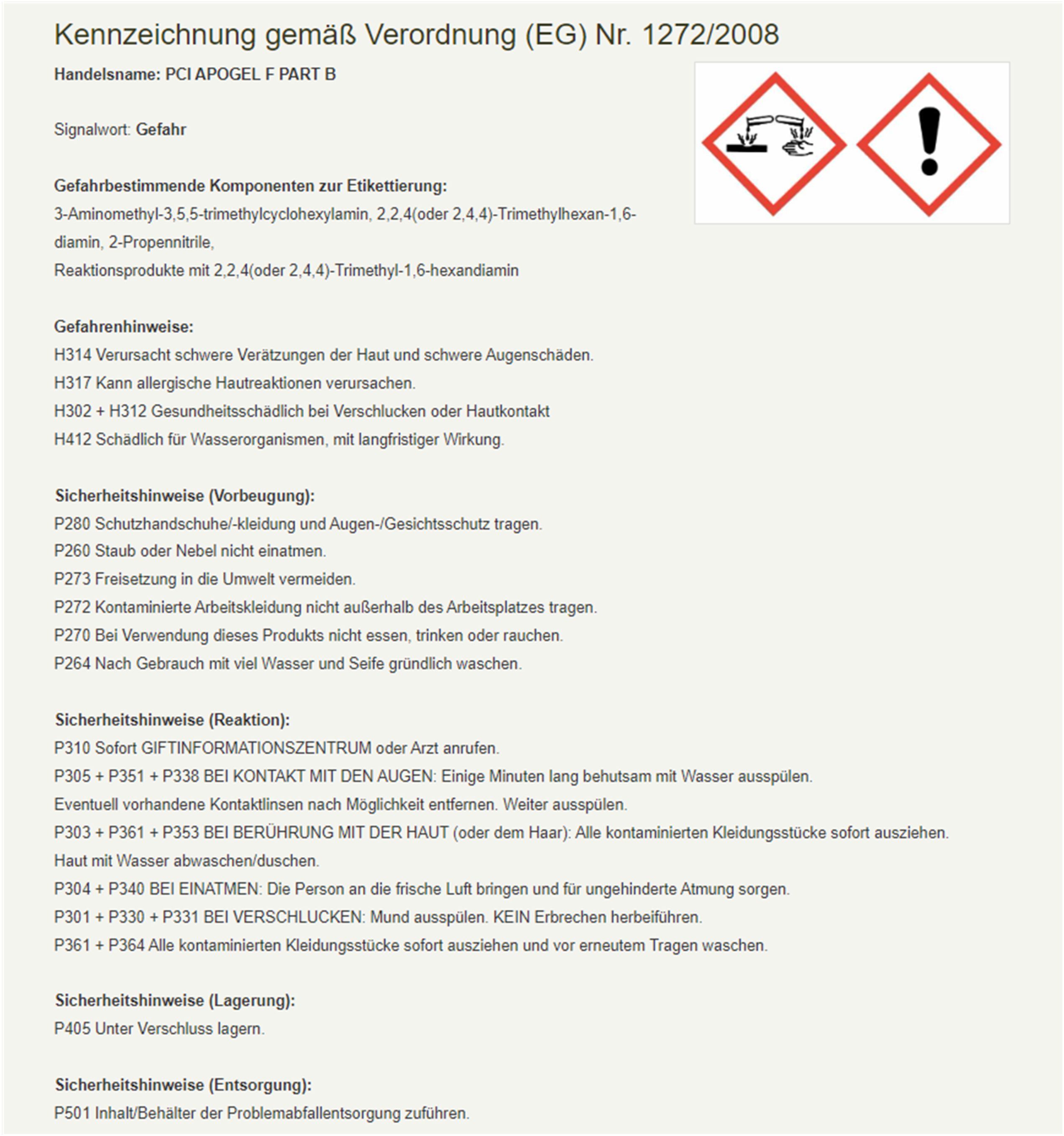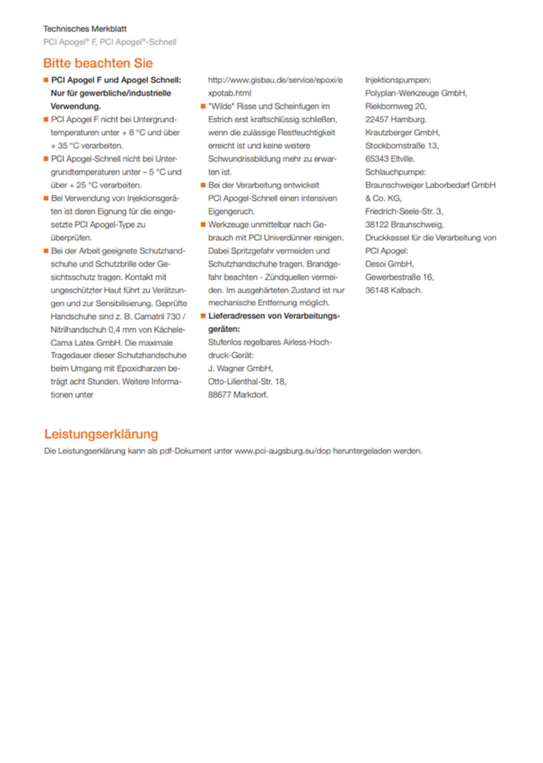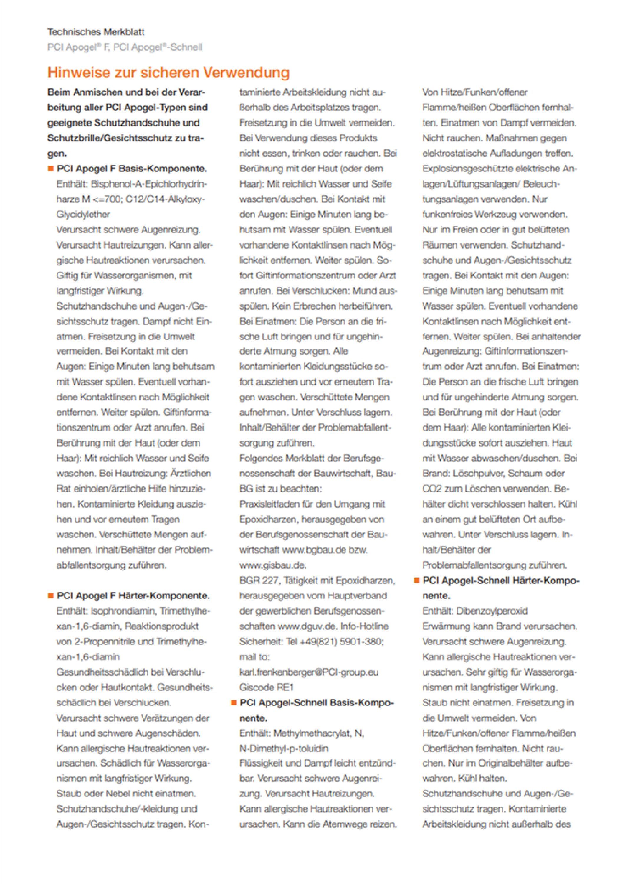 PCI PCI Apogel F 1 kg 2-k Gießharz zum Vergießen und Verpressen von Rissen in Beton