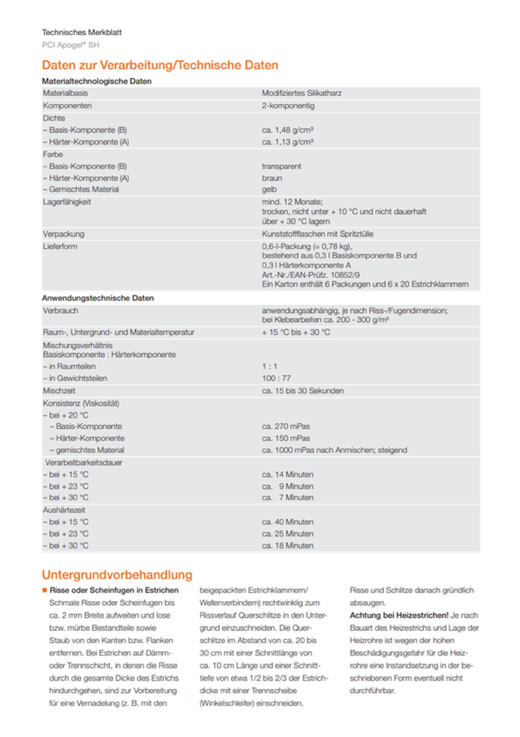 PCI PCI Apogel SH Silikat-Gießharz 2K-Rissvergussharz Estrichrisse Estrichharz Harz