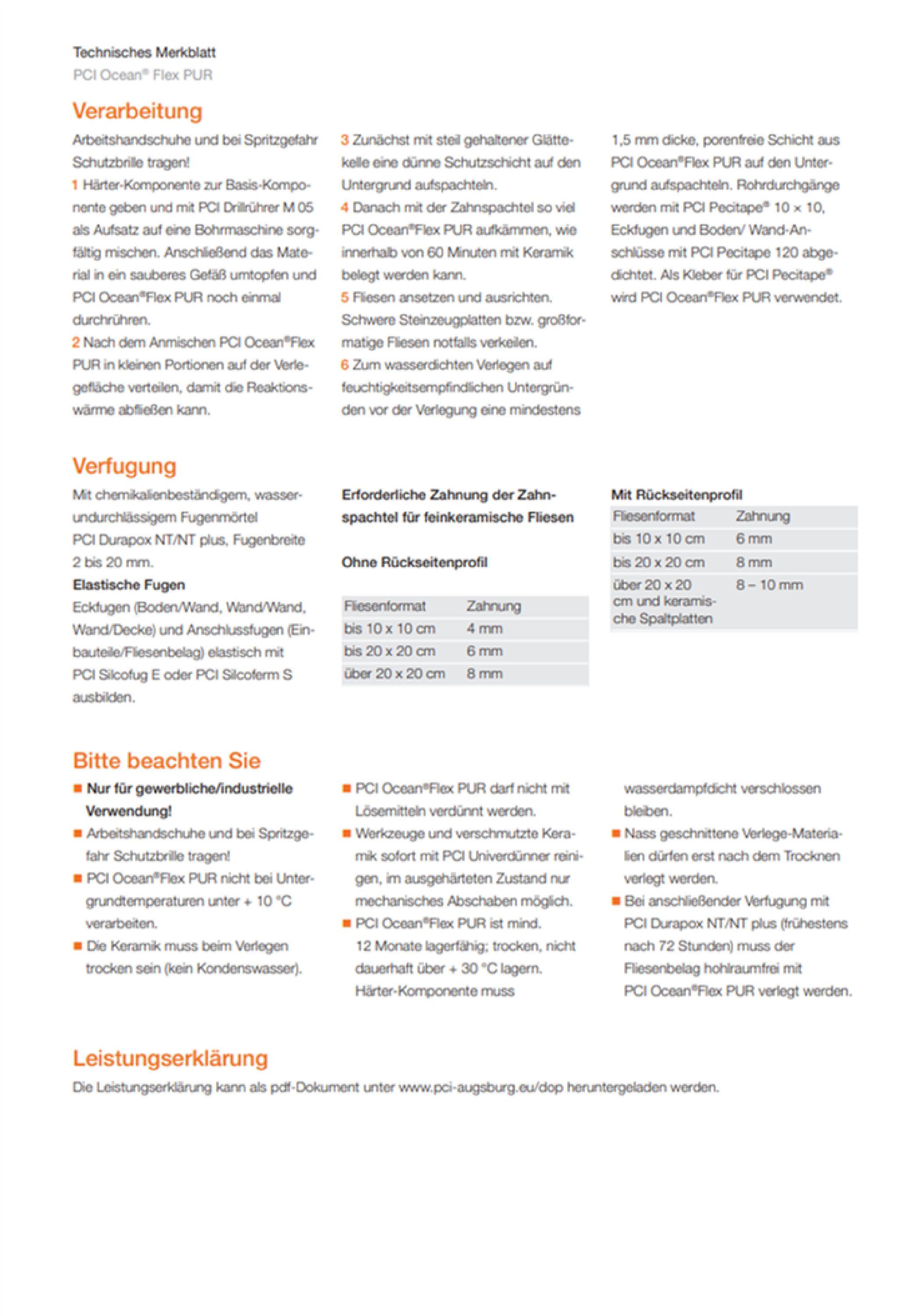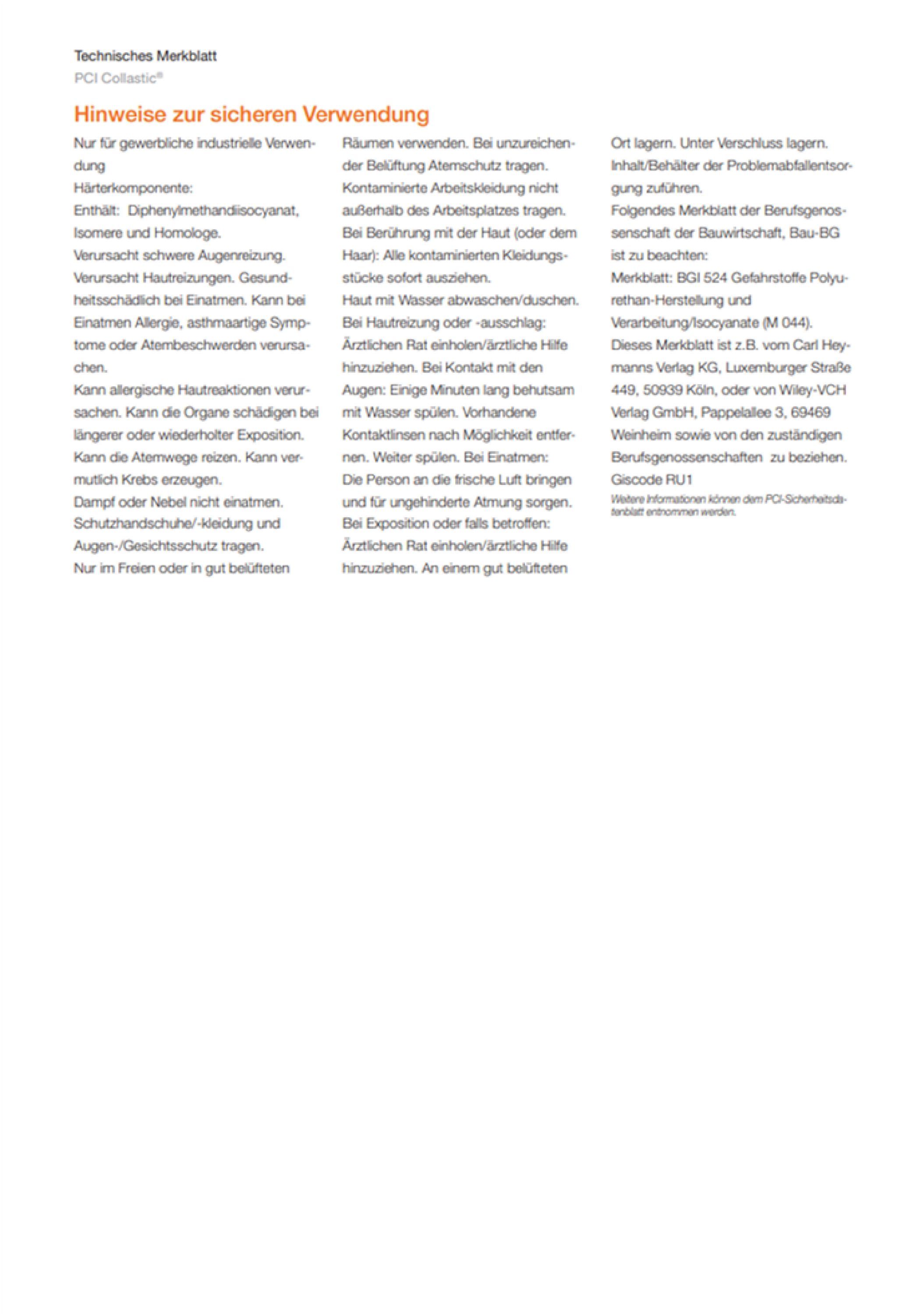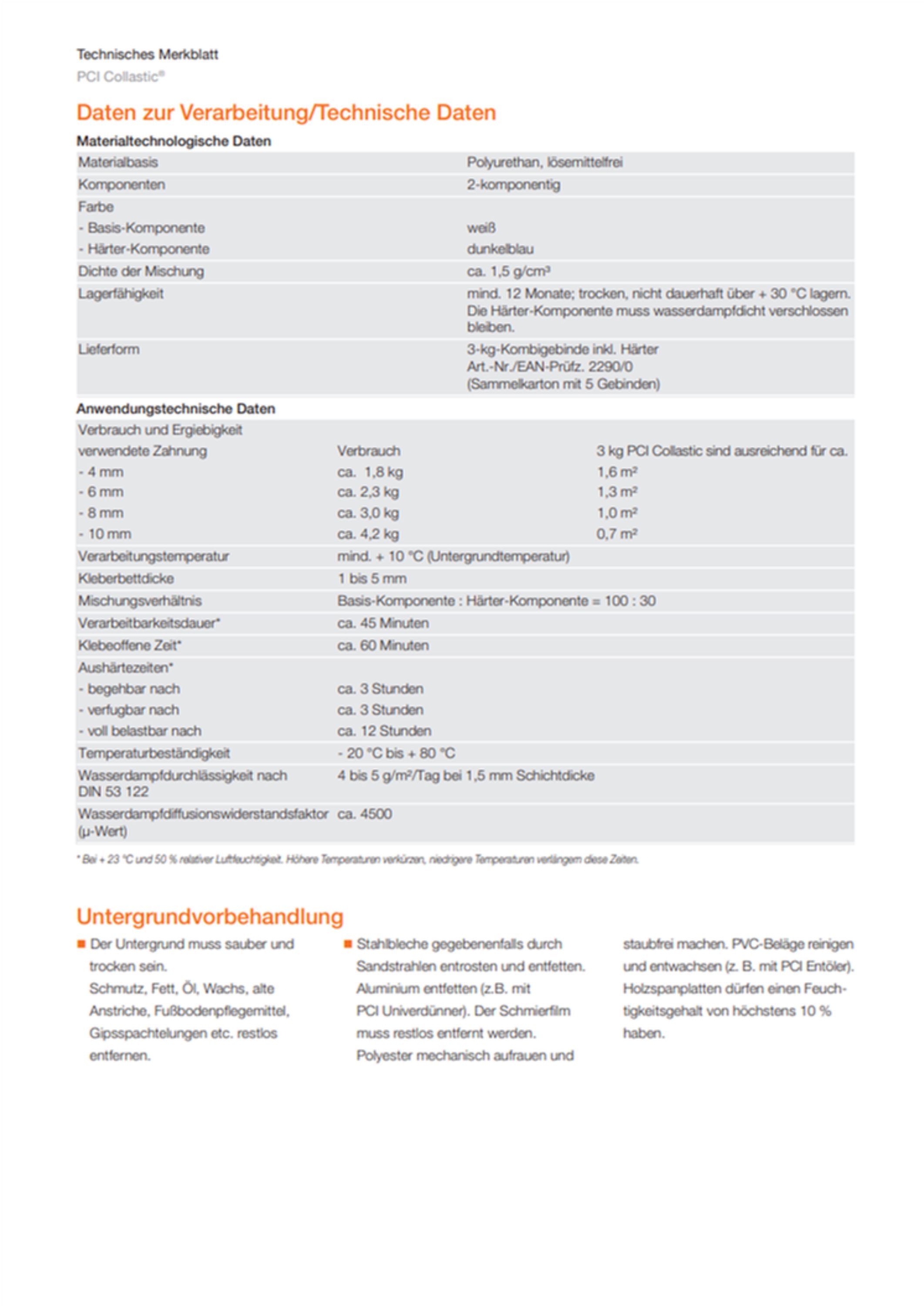 PCI PCI Collastic 2-K Polyurethan-Fliesenkleber Naturstein Aluminium Stahl Ocean Flex Pur