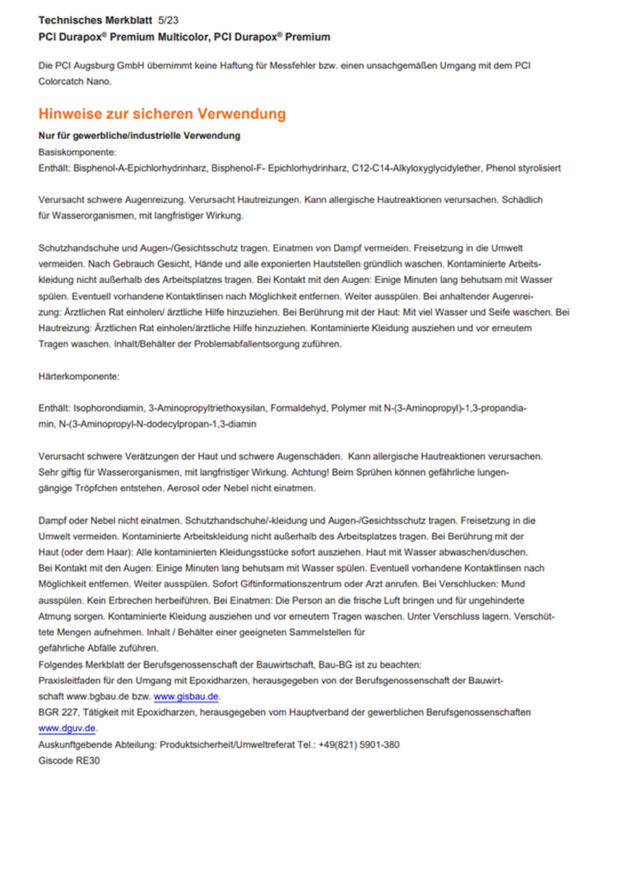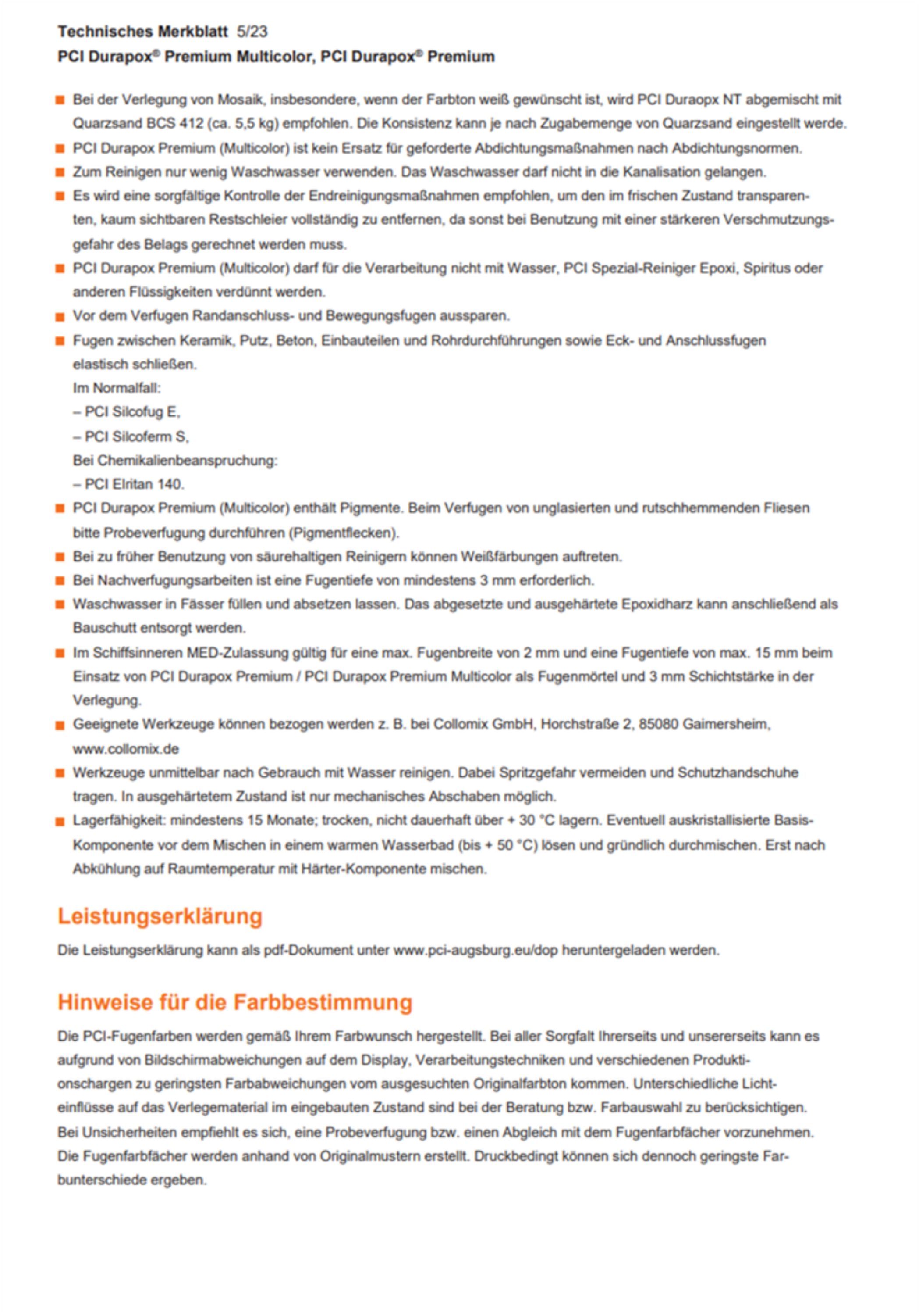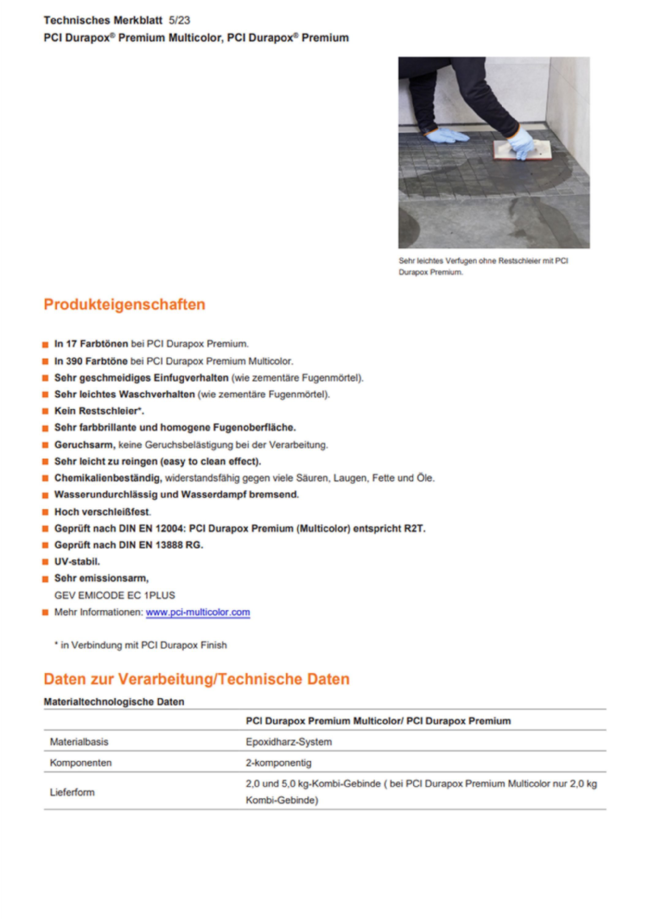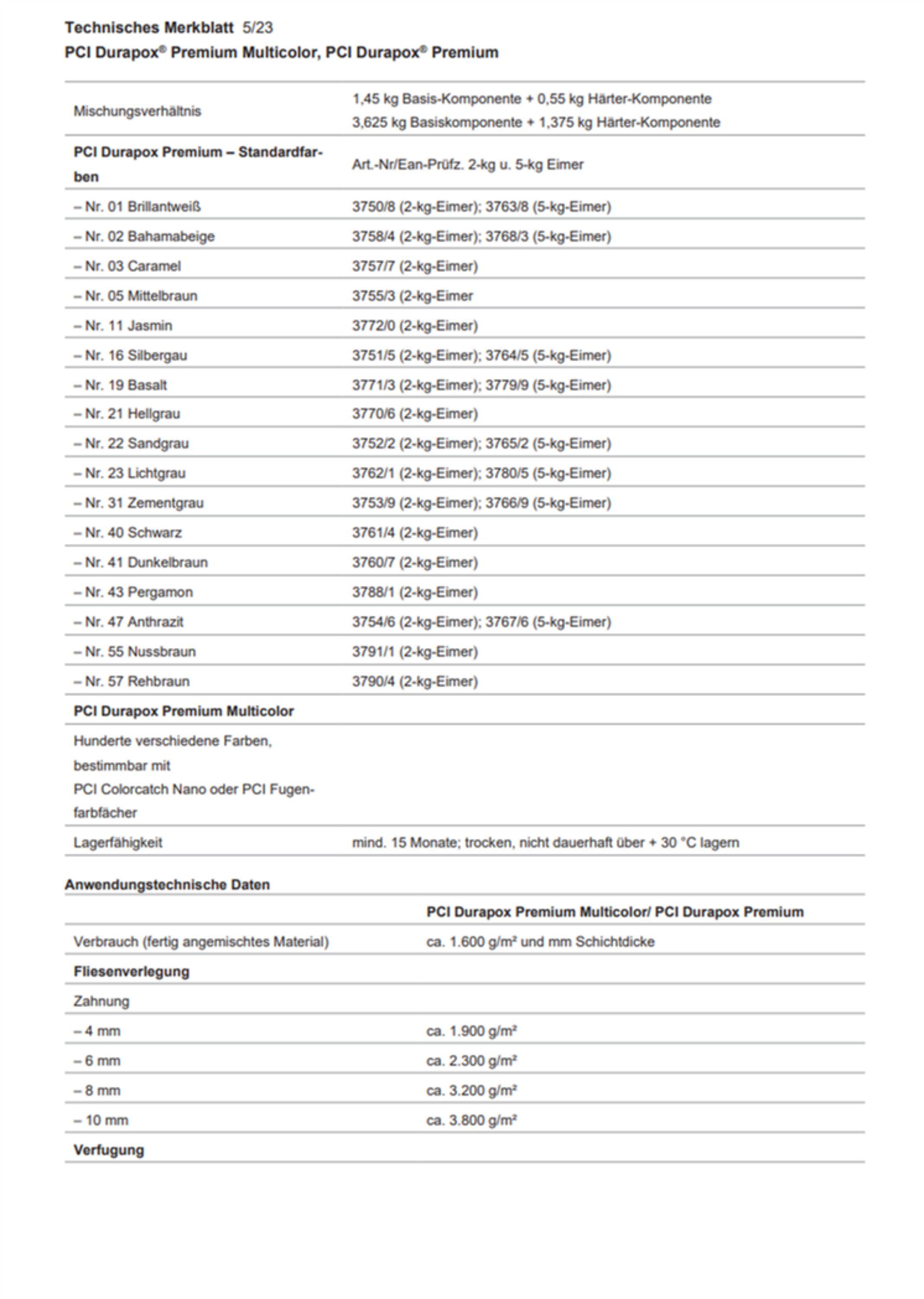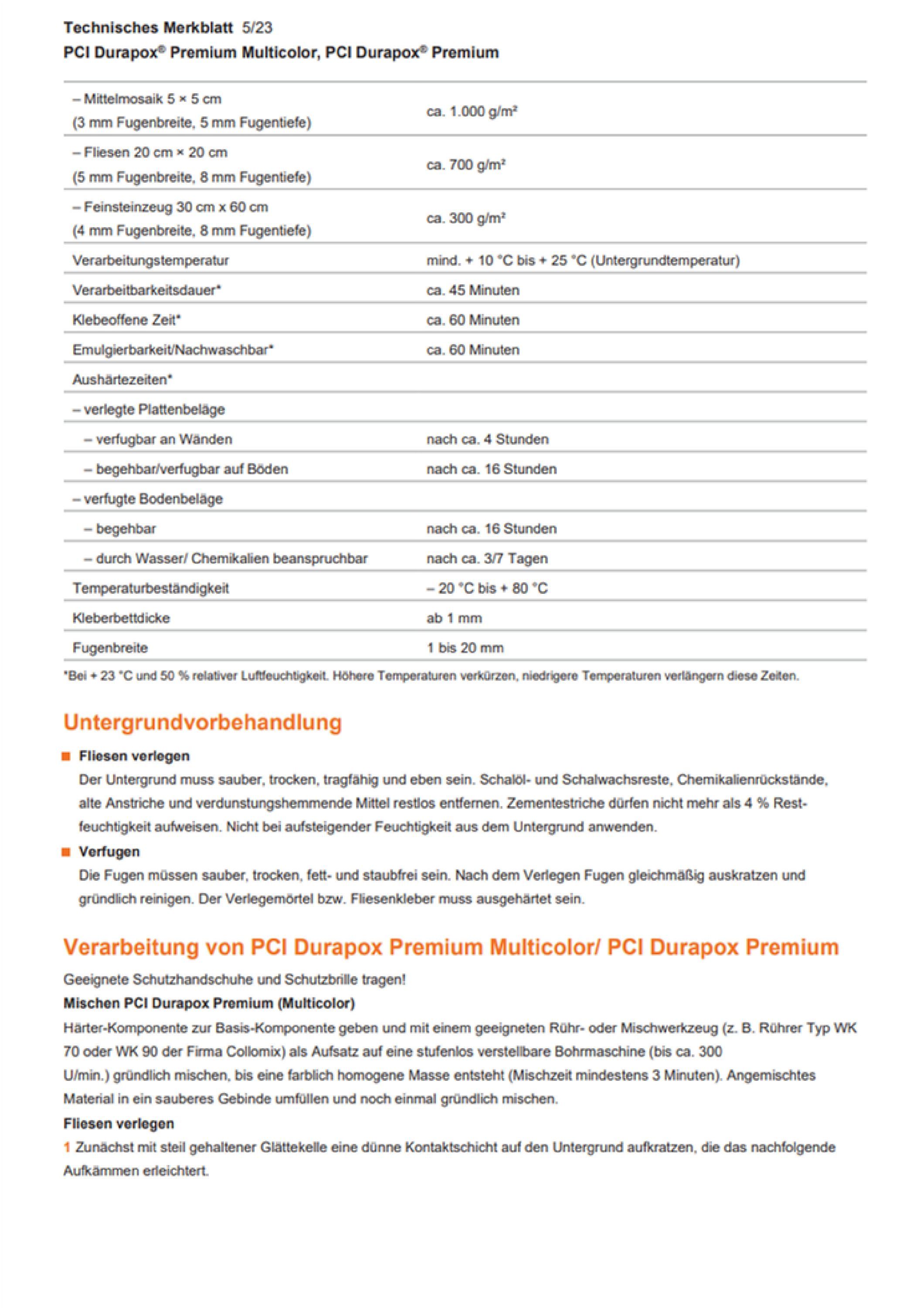 PCI PCI Durapox Premium 2K-Epoxidharz-Fugenmörtel Fugenmasse Verfugen Verlegen Fliesen