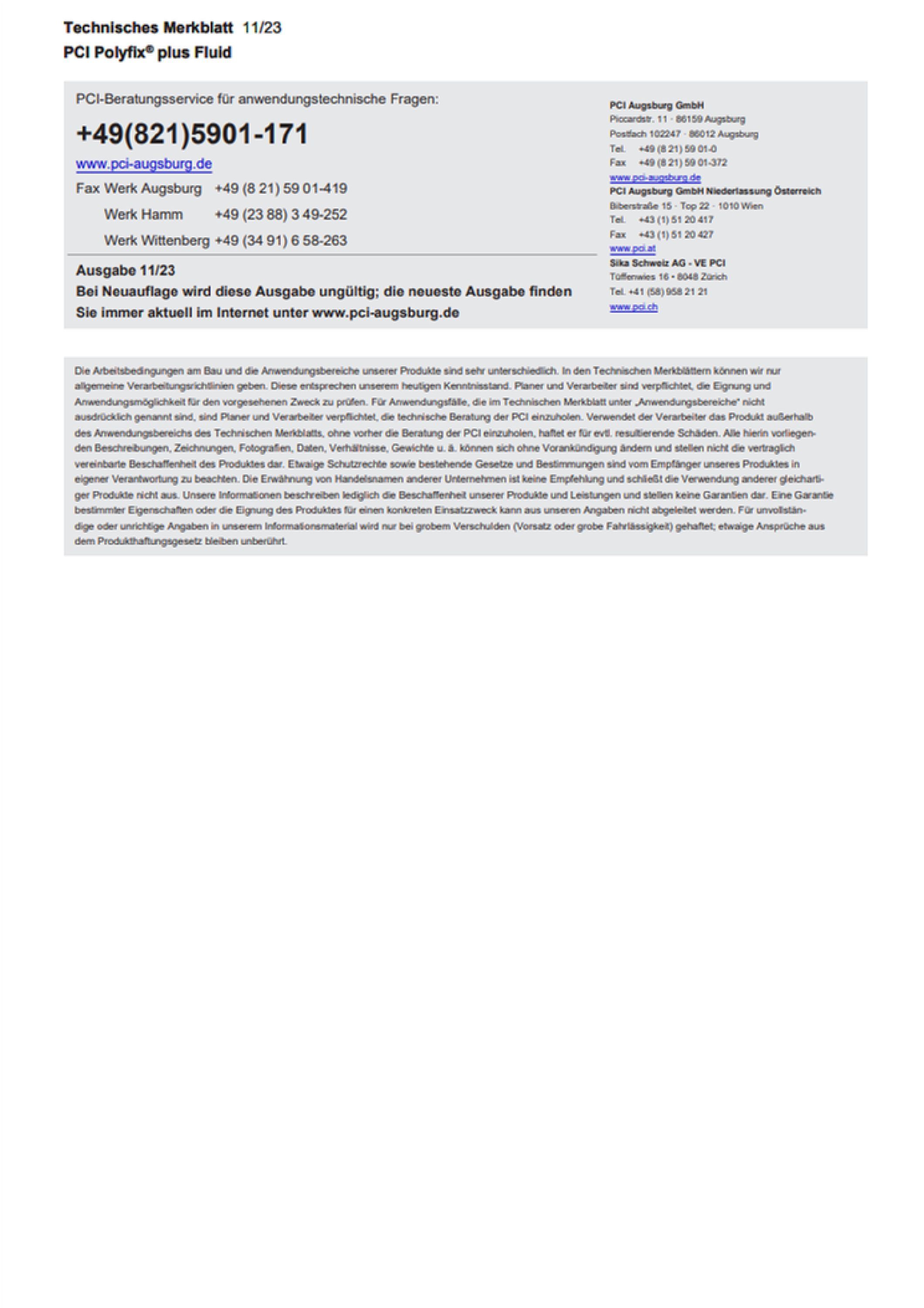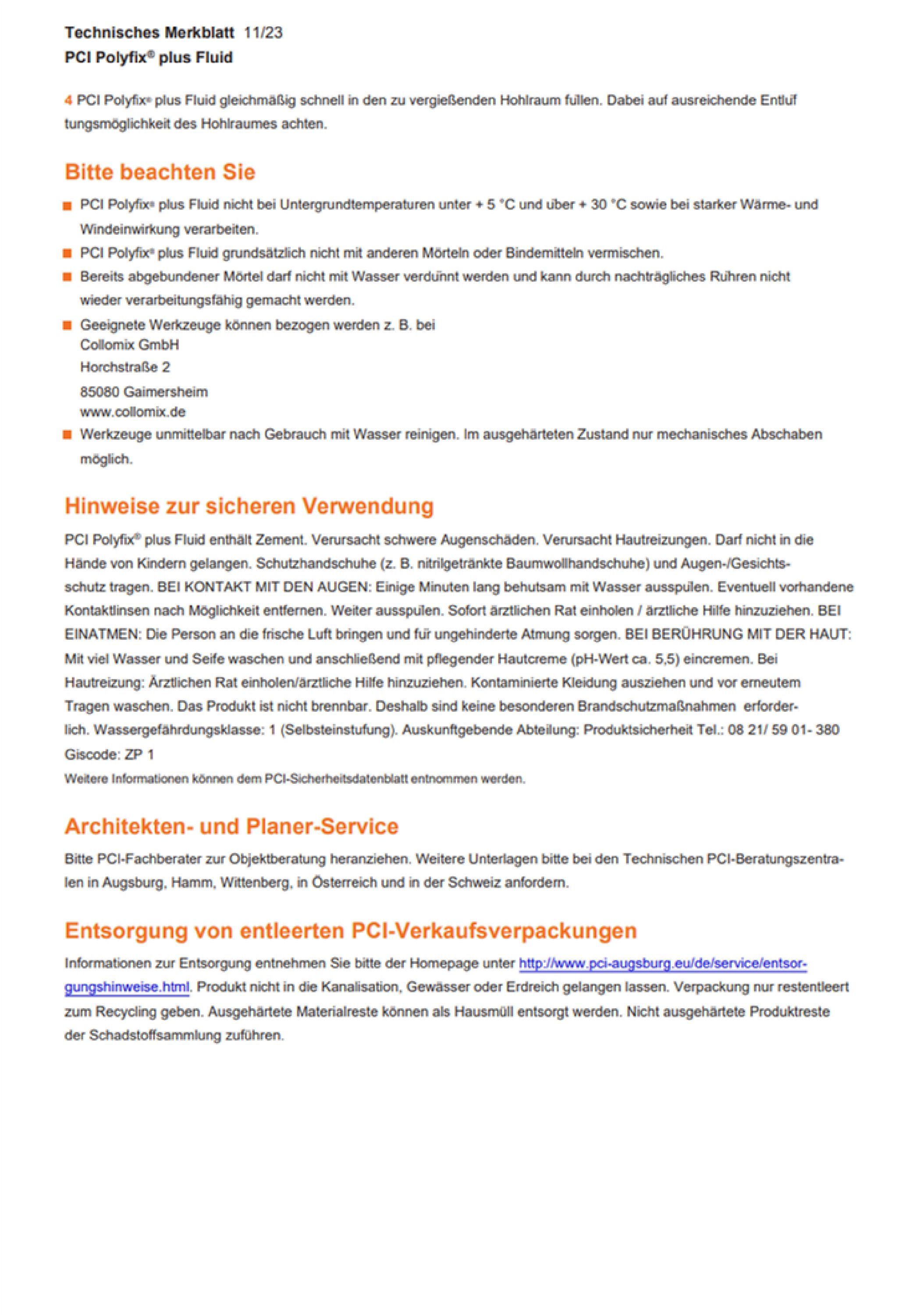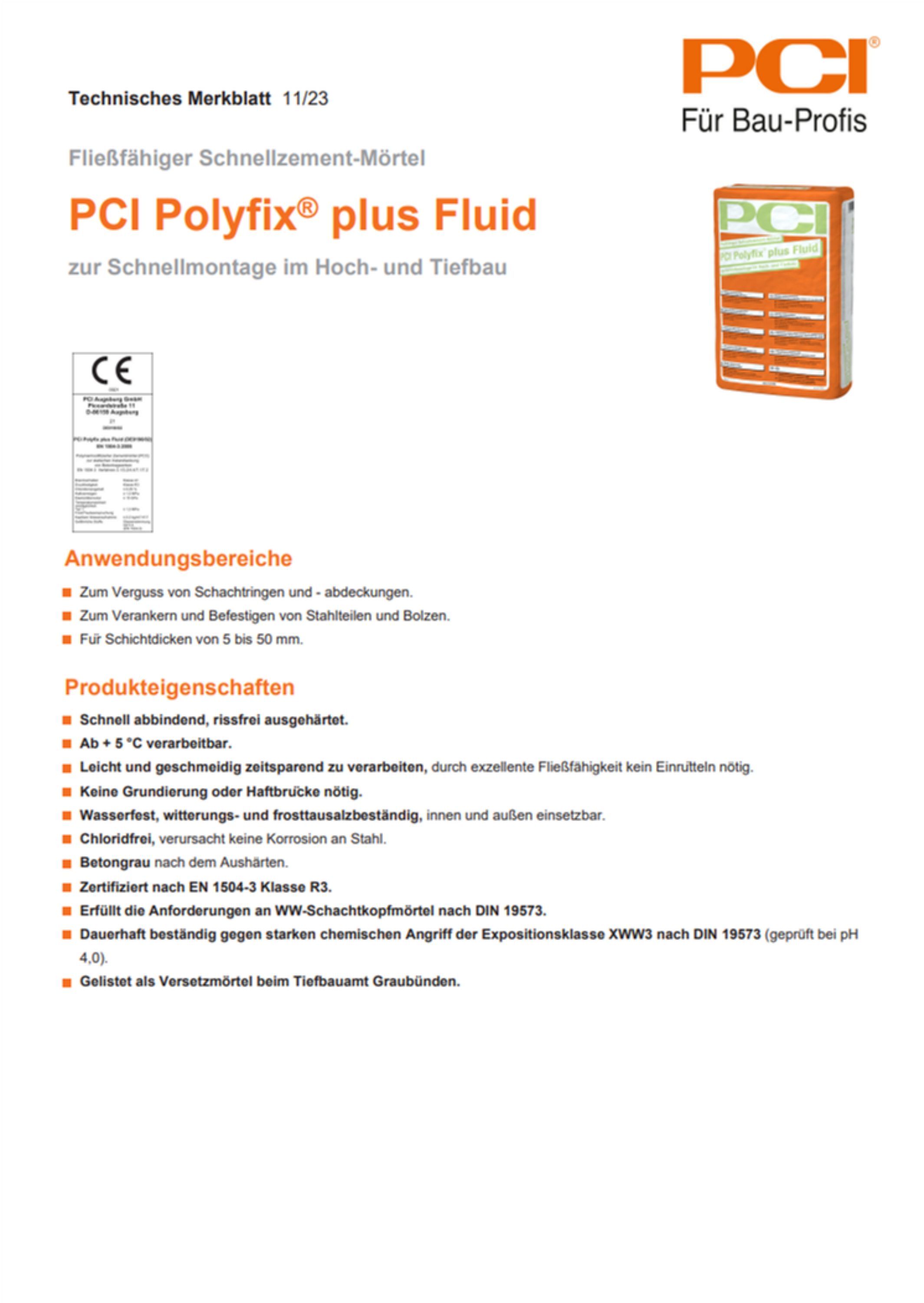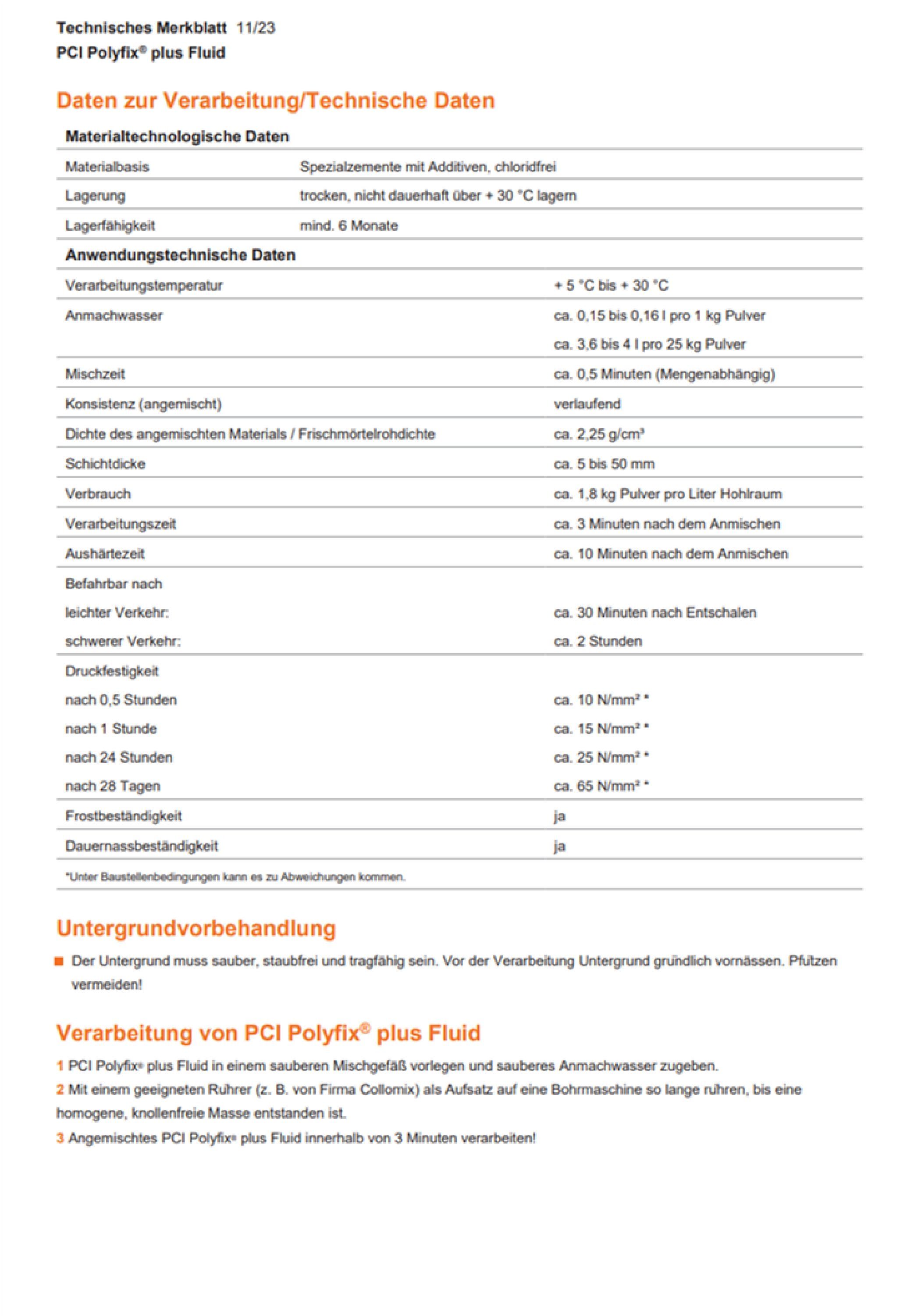 PCI PCI Polyfix plus Fluid Fließfähiger Schnellzement-Mörtel Vergussmörtel Montagemörtel