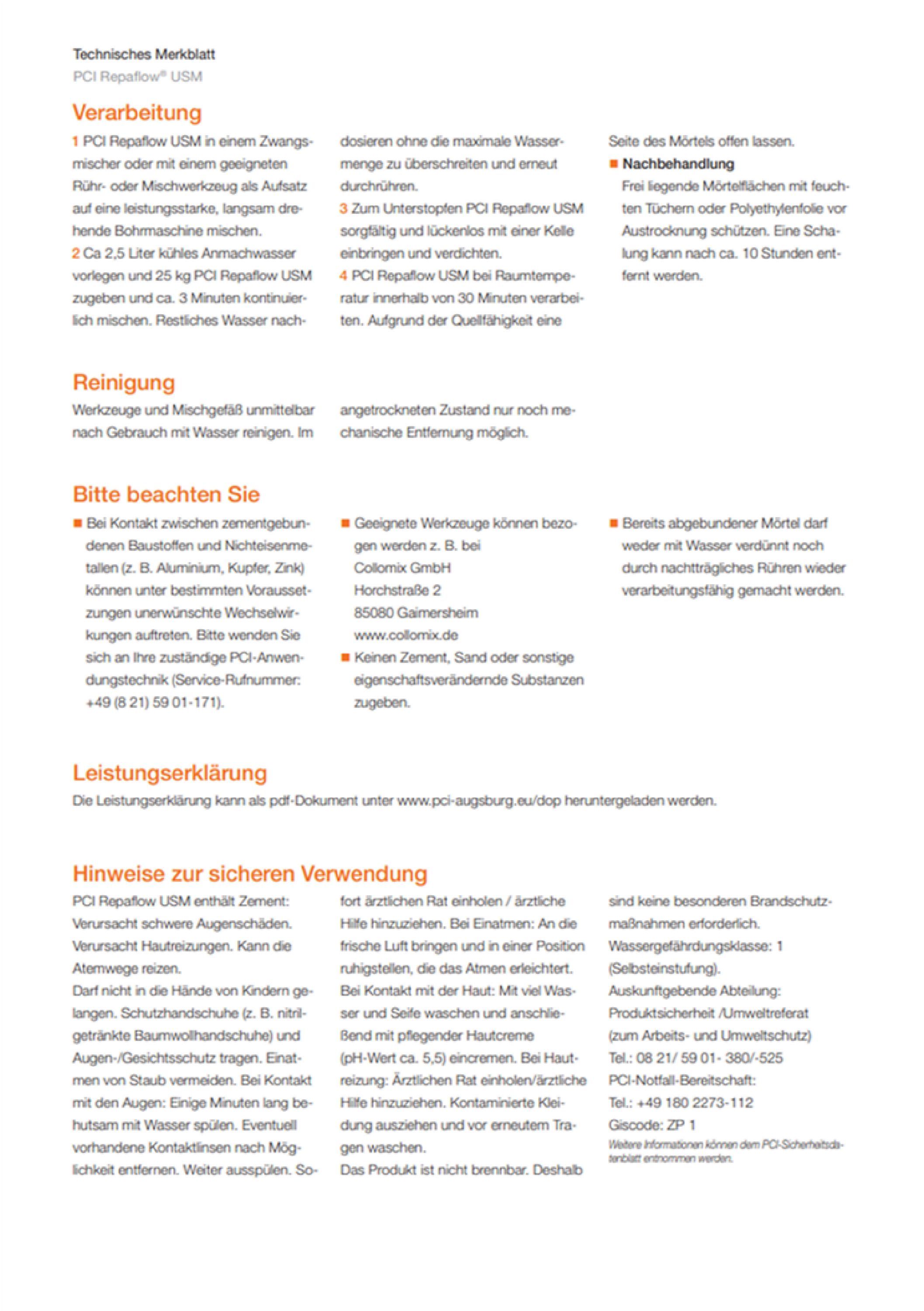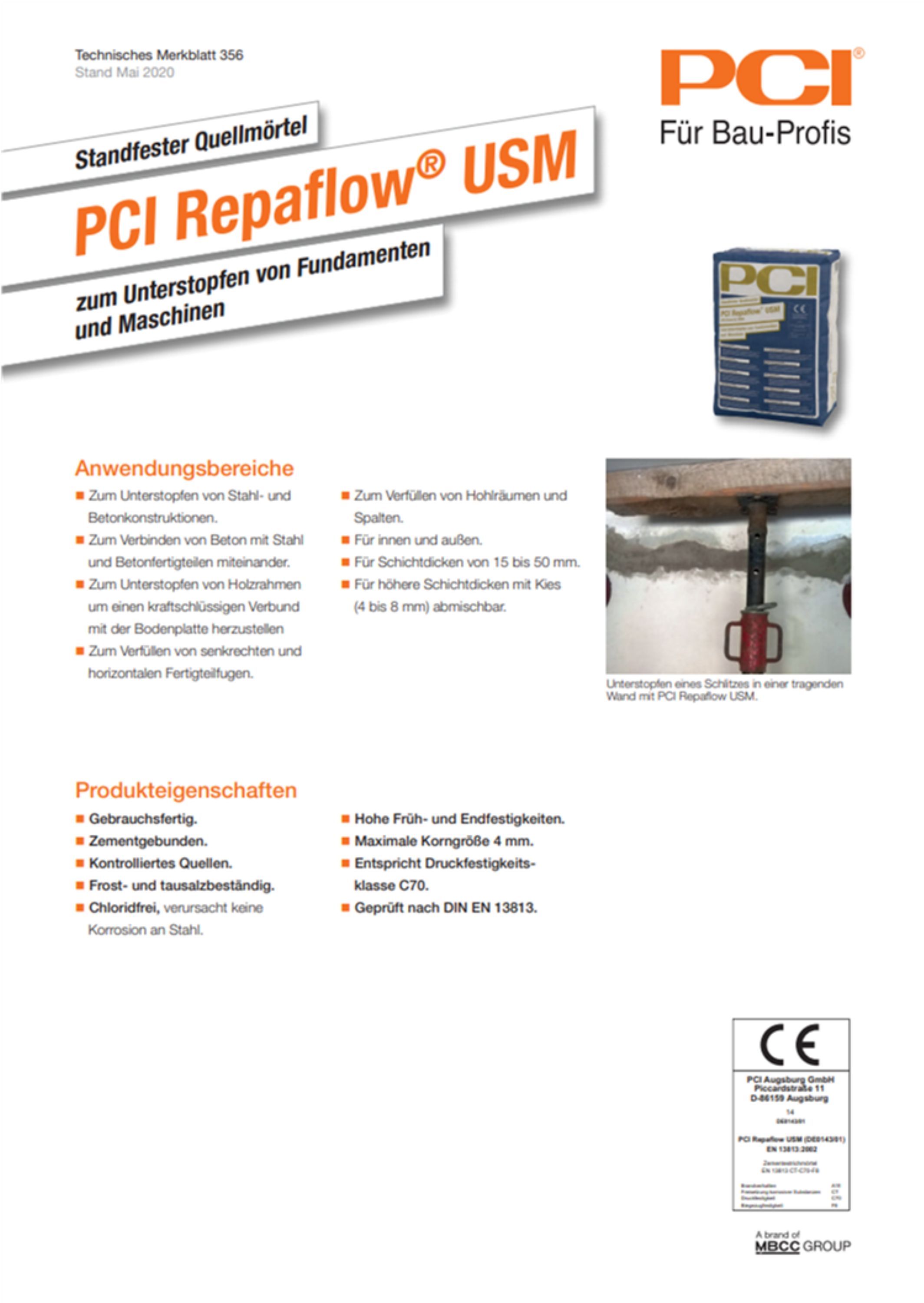 PCI PCI Repaflow USM Quellmörtel Stopfmörtel Unterstopfen Fertigteile Unterstopfmörtel