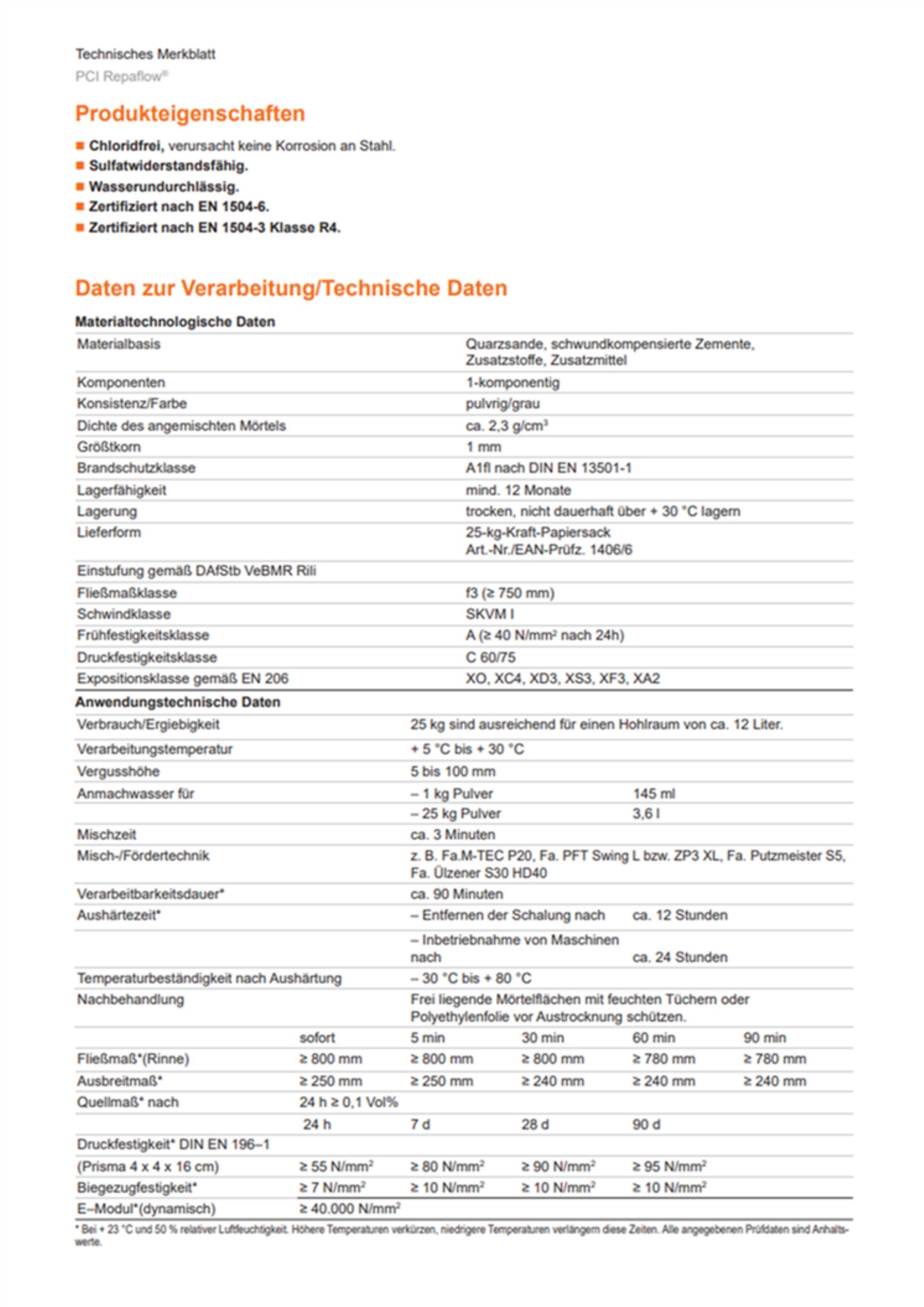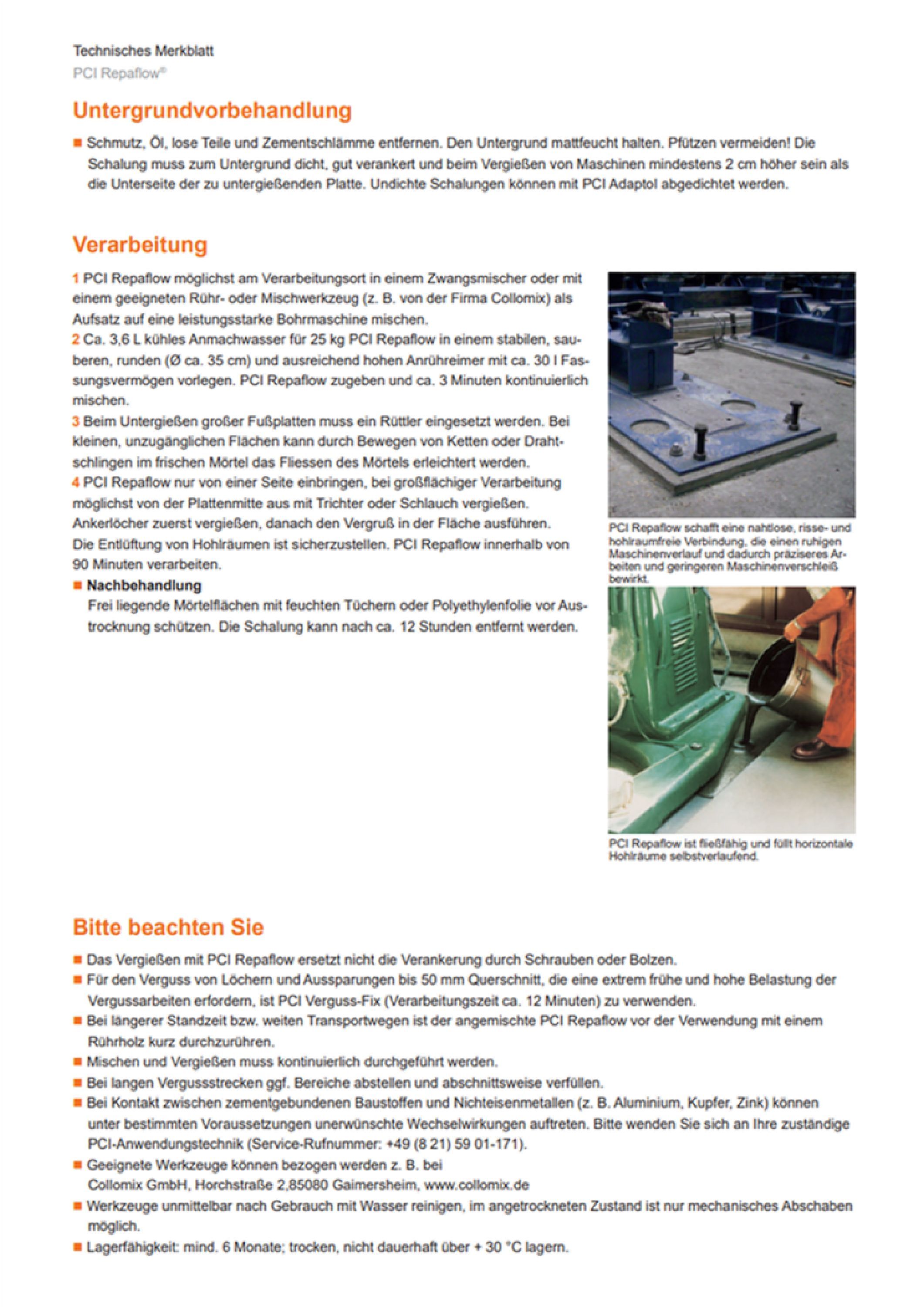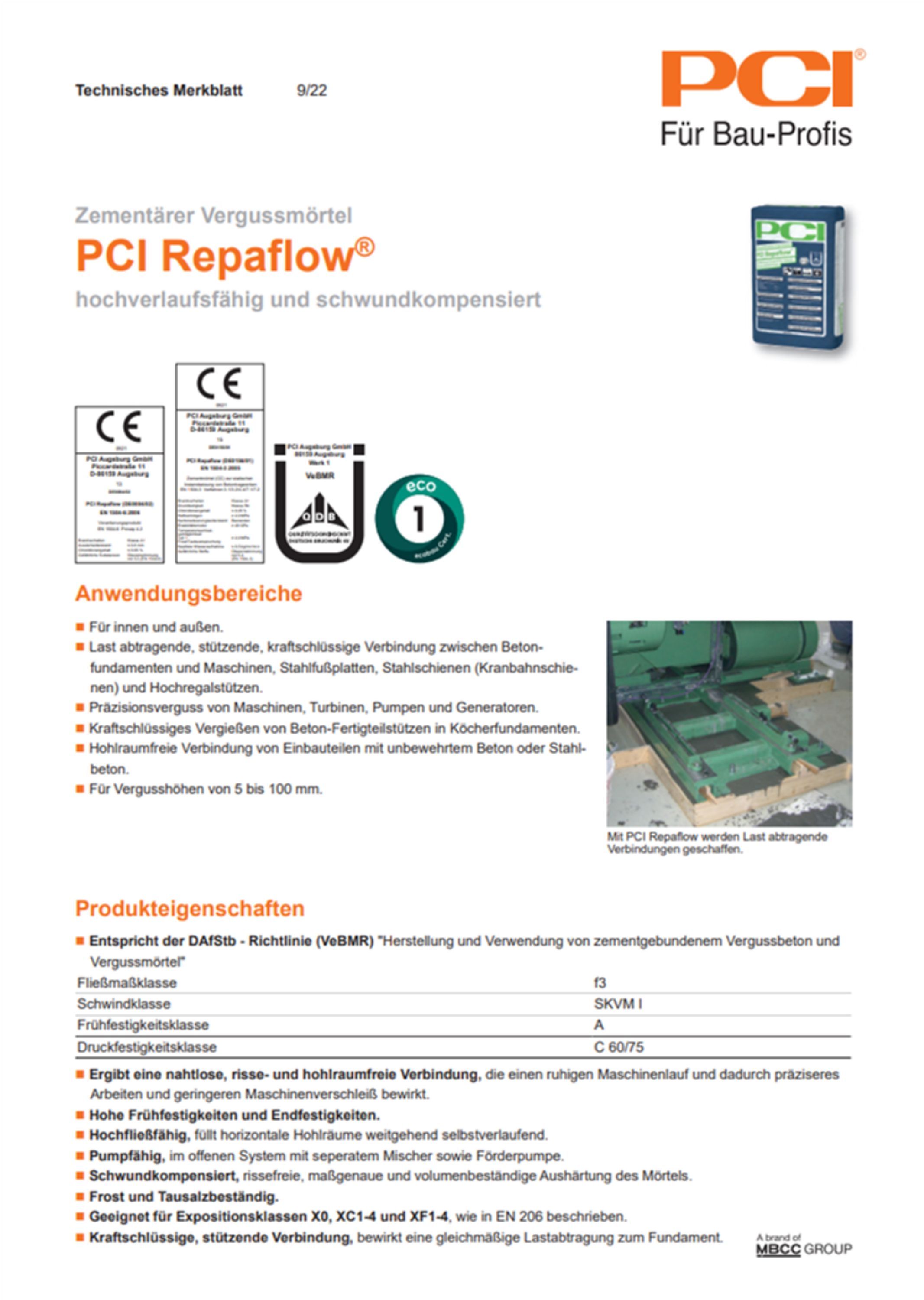 PCI PCI Repaflow Vergussmörtel Maschinen Stahlfußplatten Stahlschienen Turbinen Türzargen