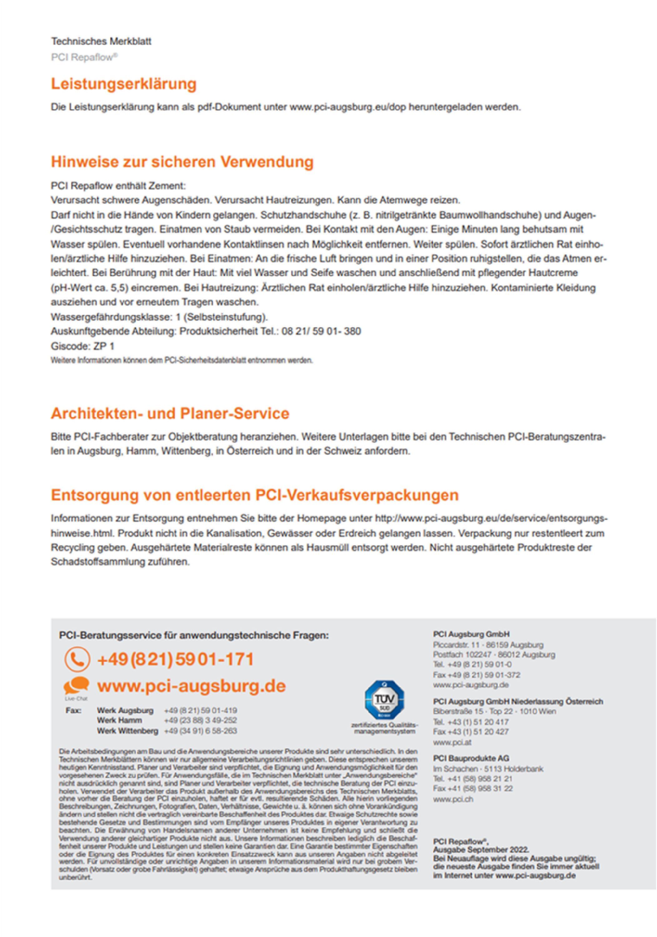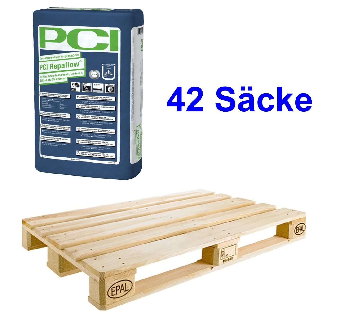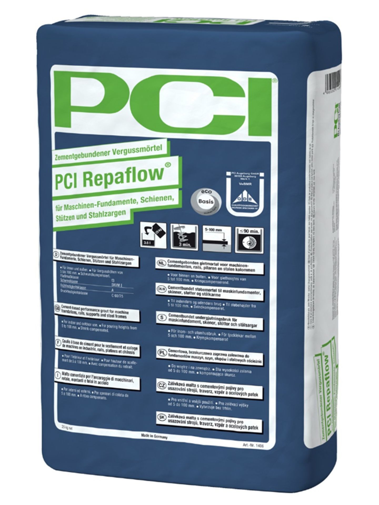 PCI PCI Repaflow Vergussmörtel Maschinen Stahlfußplatten Stahlschienen Turbinen Türzargen
