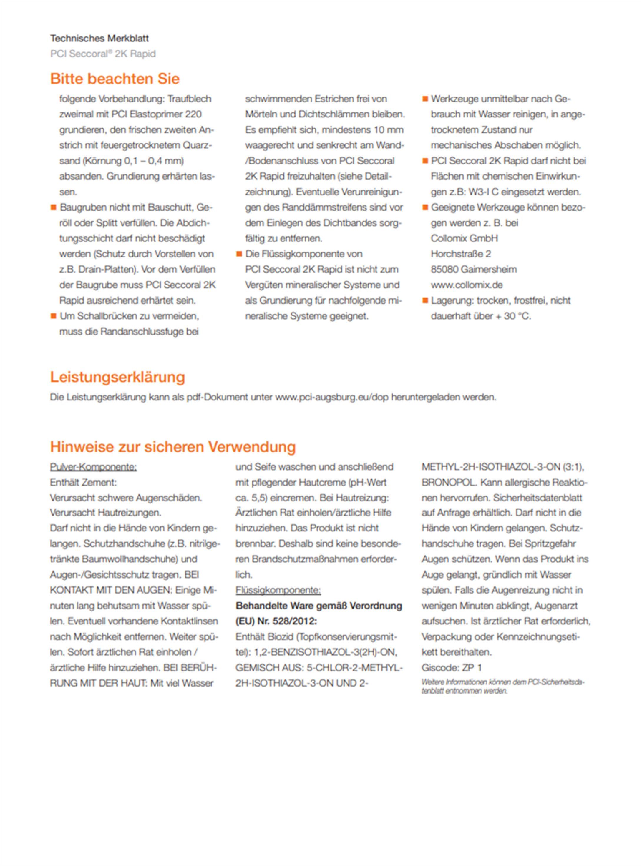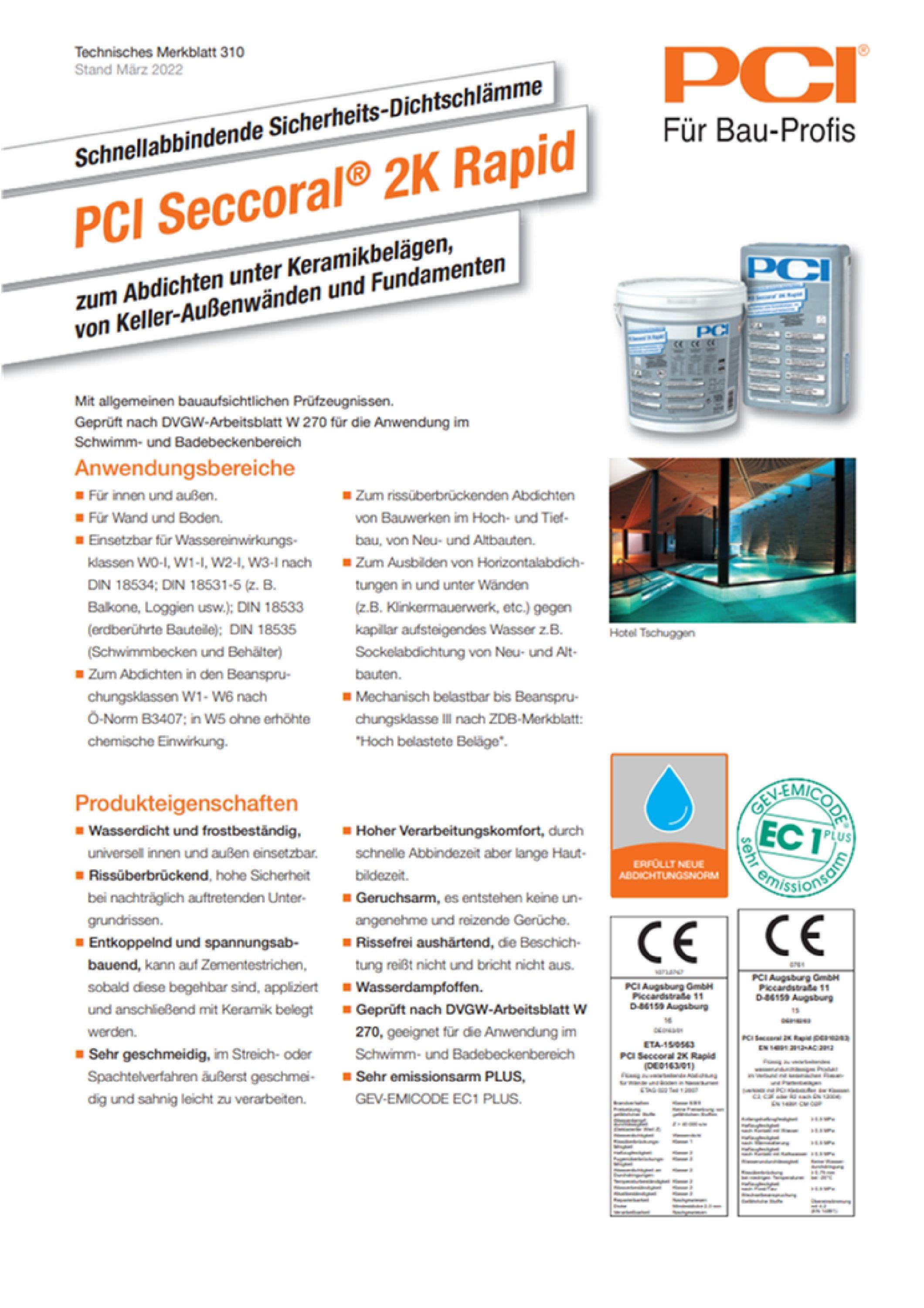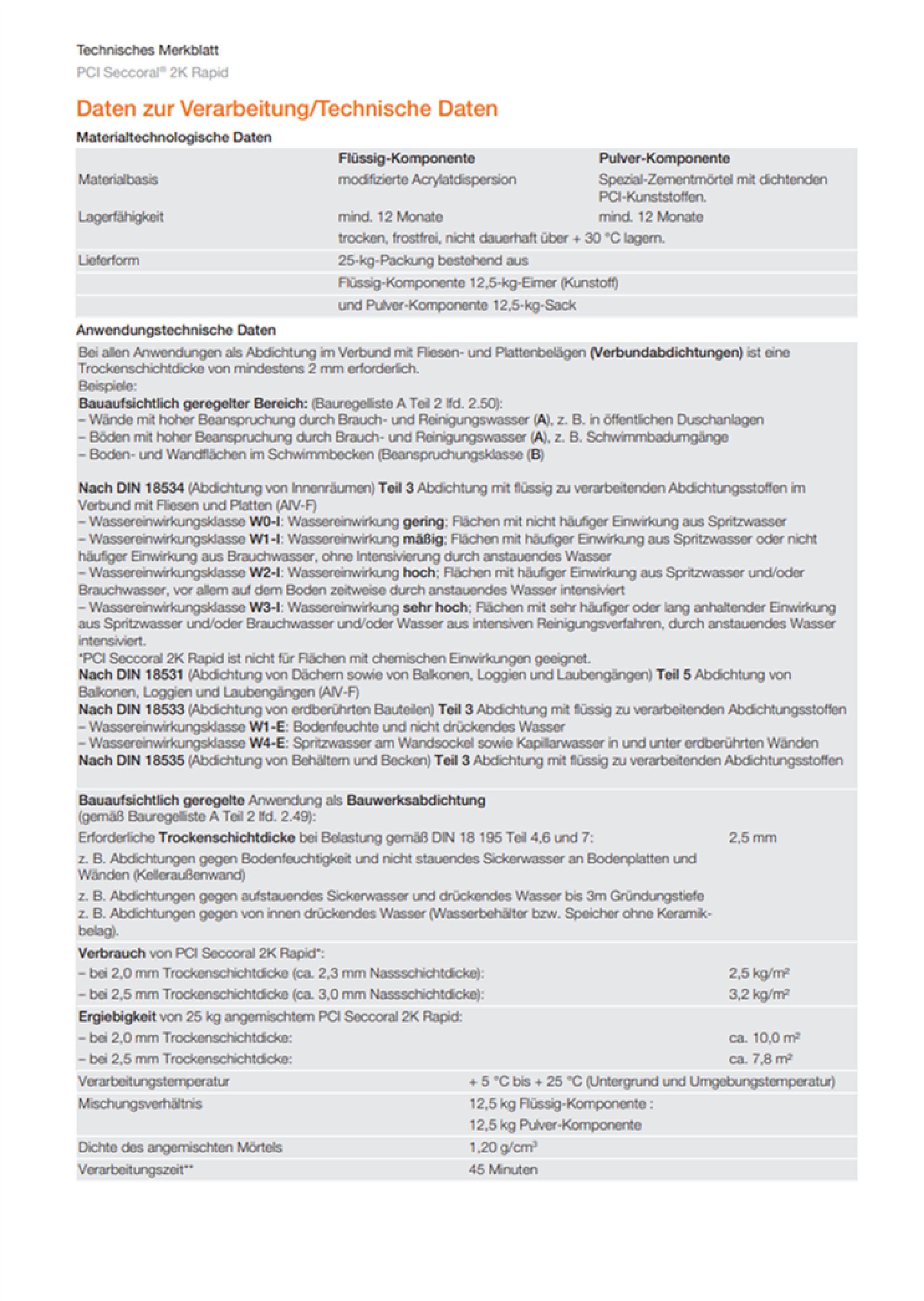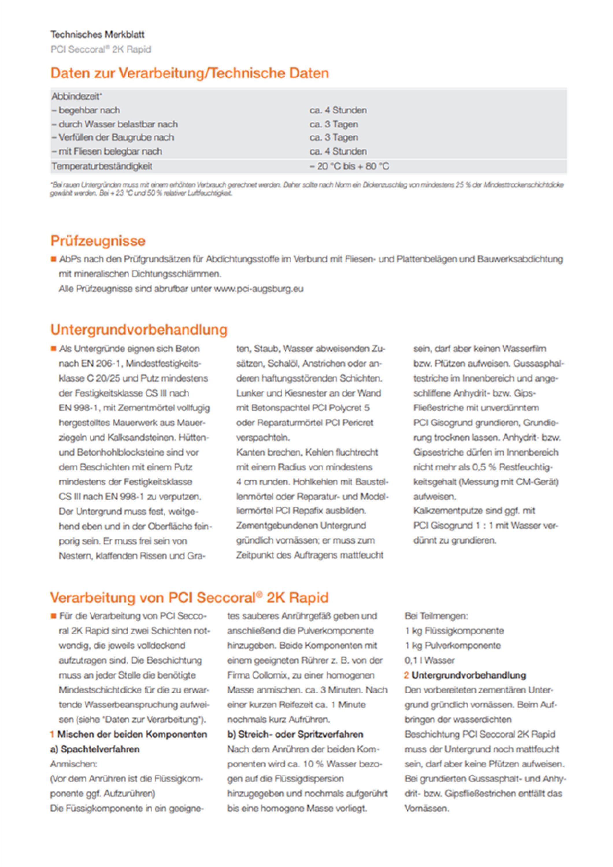 PCI PCI Seccoral 2K Rapid Abdichtung Dichtschlämme Keller Terrasse Balkon Dusche Bad