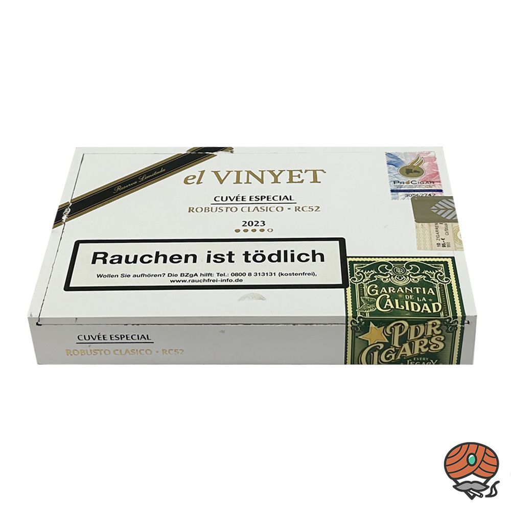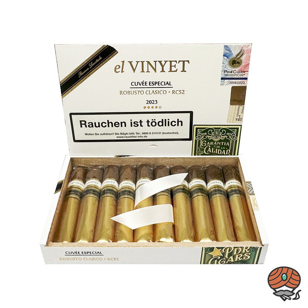 PDR El Vinyet Cuvee Especial 2023 Robusto Zigarren RC52 10er Kiste Anlässlich der Intertabac 2023 wurde die lange erwartete El Vinyet aus dem Haus PDR vorgestellt. Die Zigarren sollen durch Abraham Flores, dem Inhaber der Tabacalera PDR, selber über einen Zeitraum von 22 Monaten gerollt worden sein.
