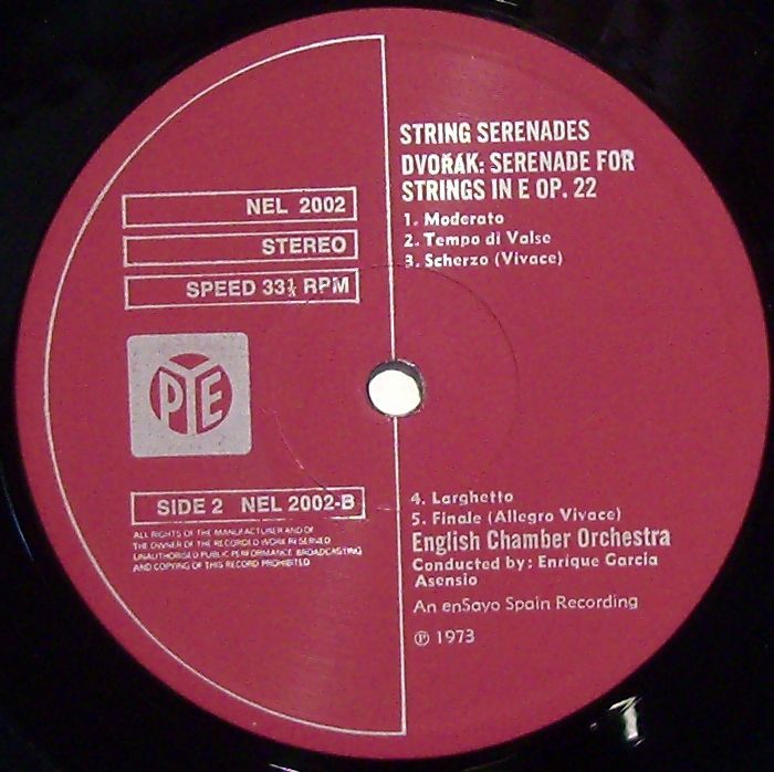 Condition Vinyl Near Mint (NM or M-) Condition Sleeve Very Good Plus (VG+) Tracks included: Serenade For Strings In E Major Op. 22 Composed By : Antonín Dvorák I 1. > 1st Mov. - Piece In Forma Sonatina (Andante Non Troppo - Allegro Moderato) 2. > Waltz (Moderato) 3. > Elegie (