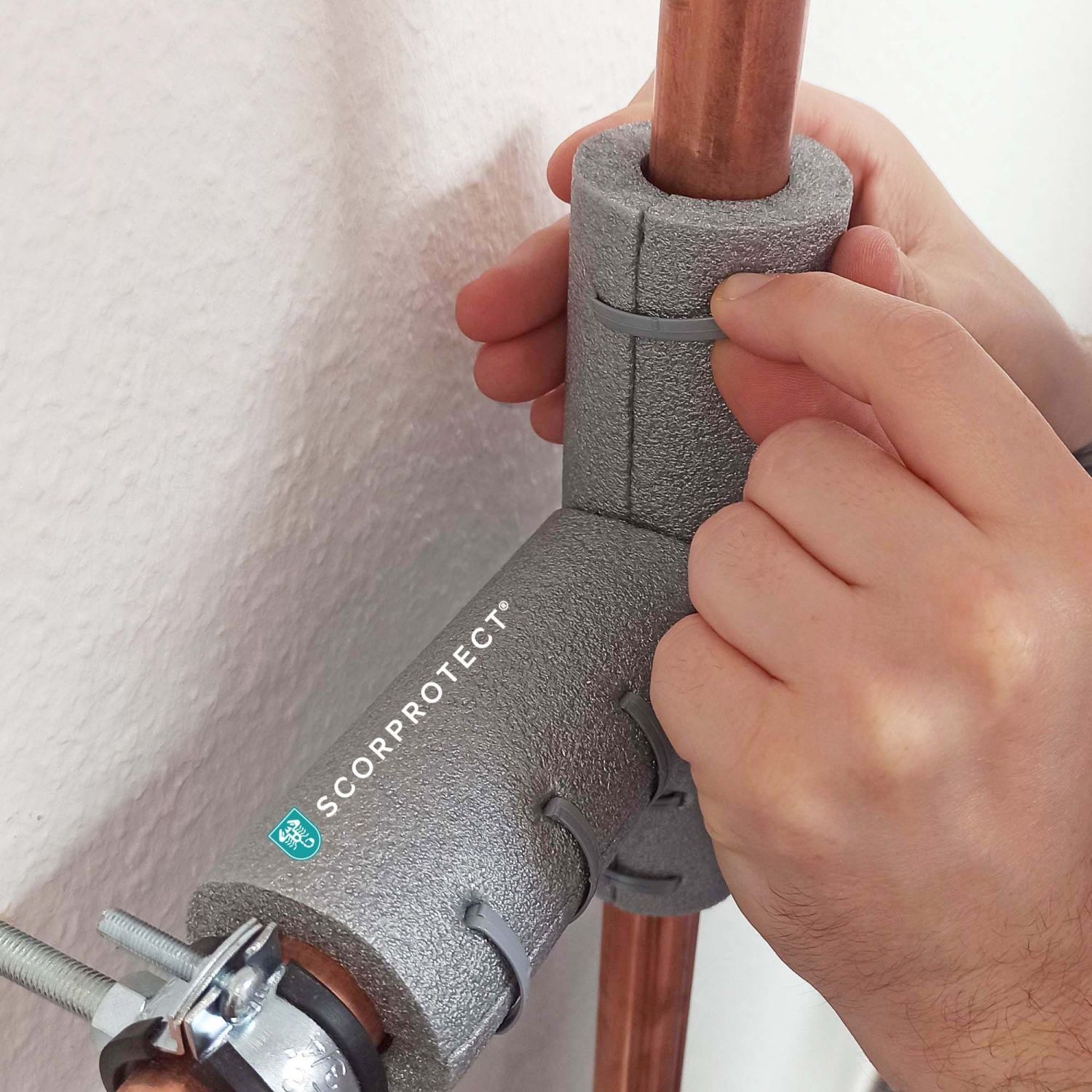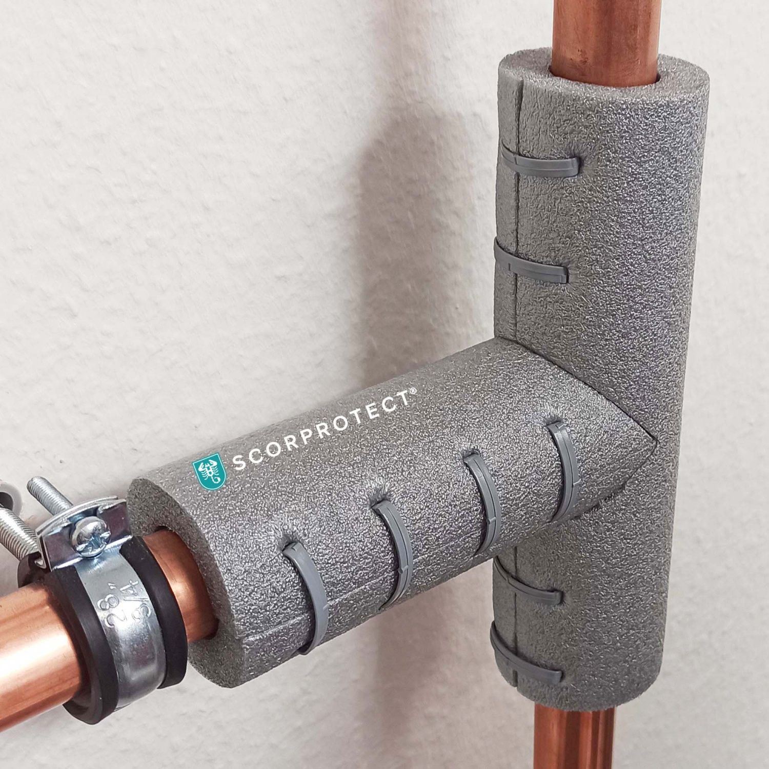 PE Rohrisolierung T-Stück hellgrau selbstklebend + 8 Clipse