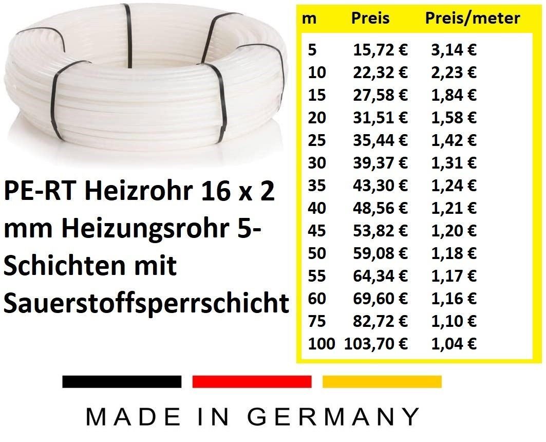PE-RT Heizrohr 16 x 2 mm Heizungsrohr 5-Schichten mit Sauerstoffsperschicht