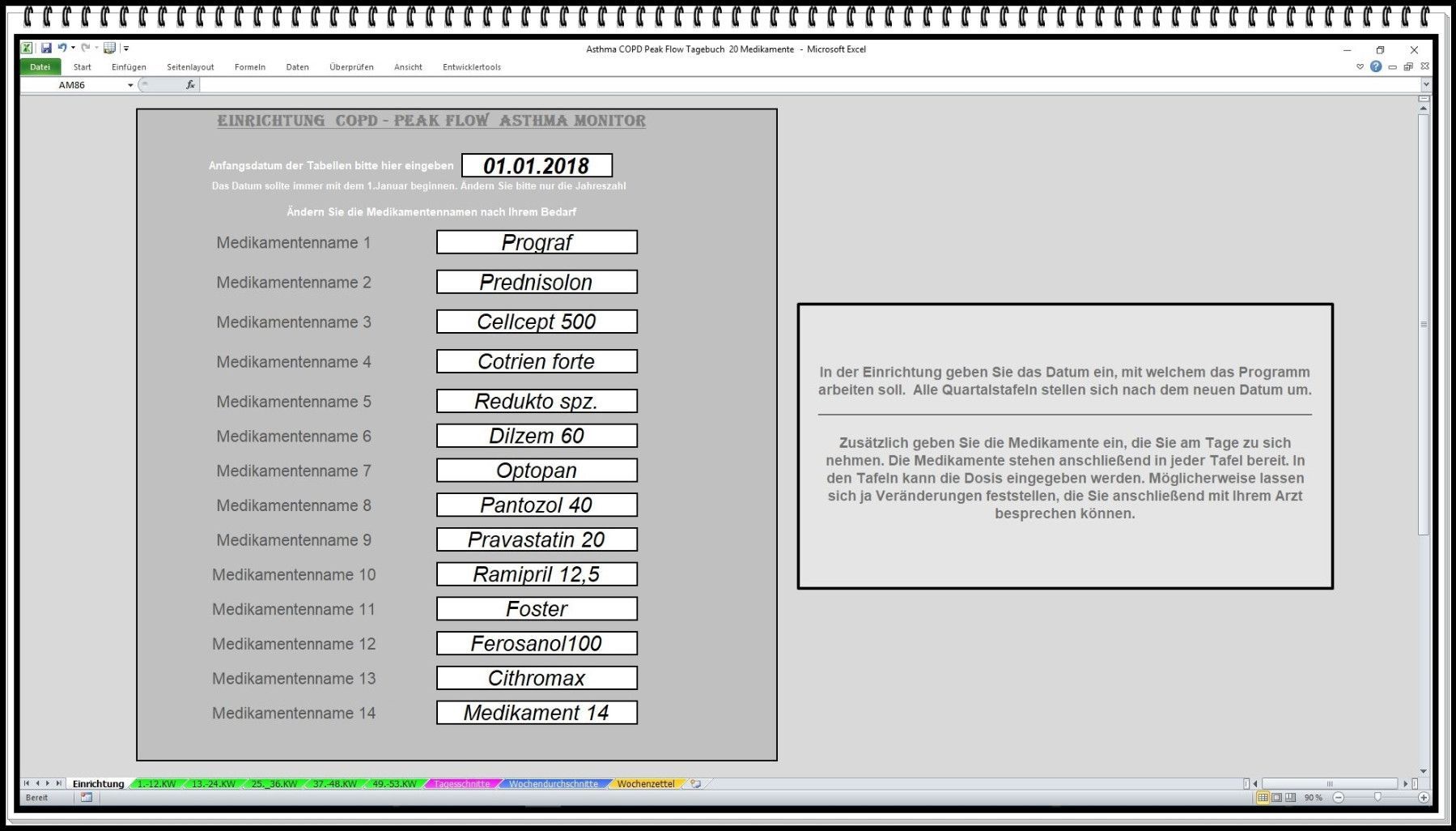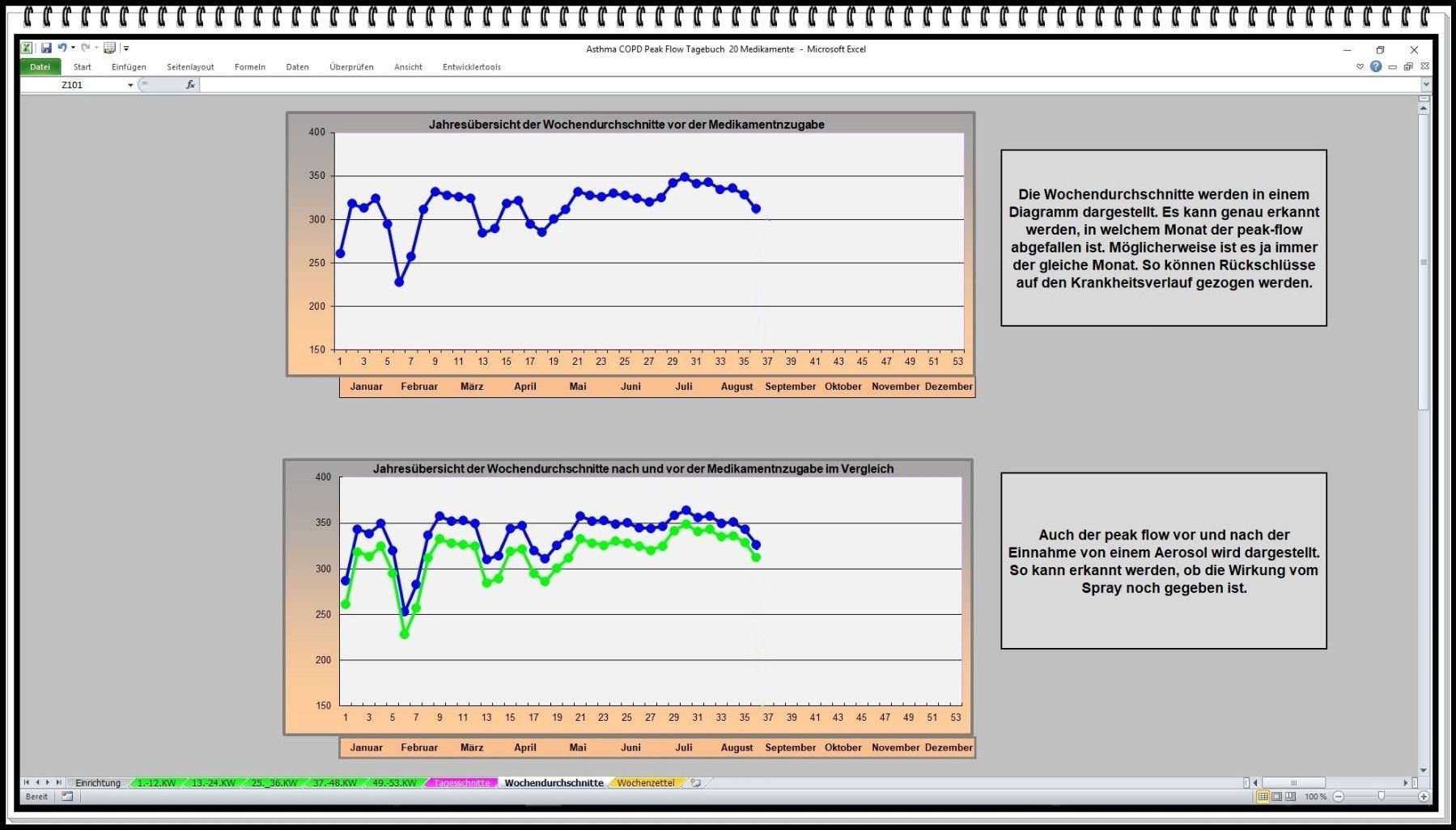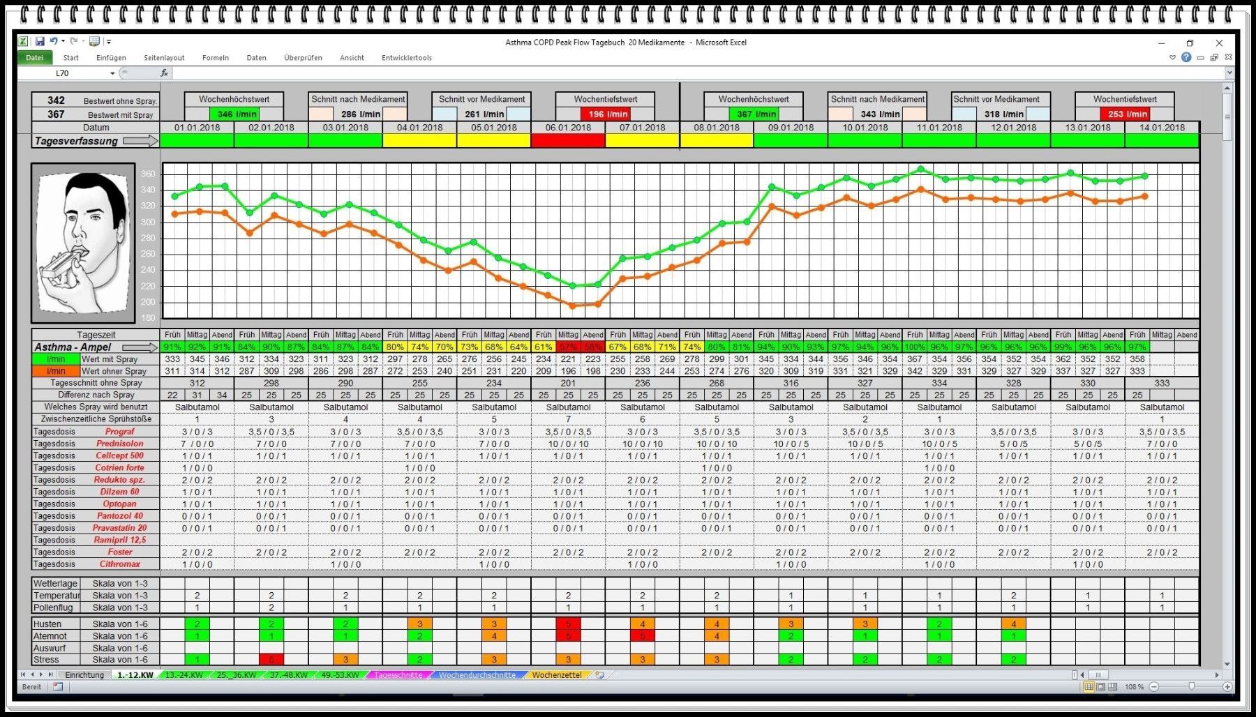 Peak Flow Meter Protokoll Asthma Tagebuch Software zur Auswertung bei COPD