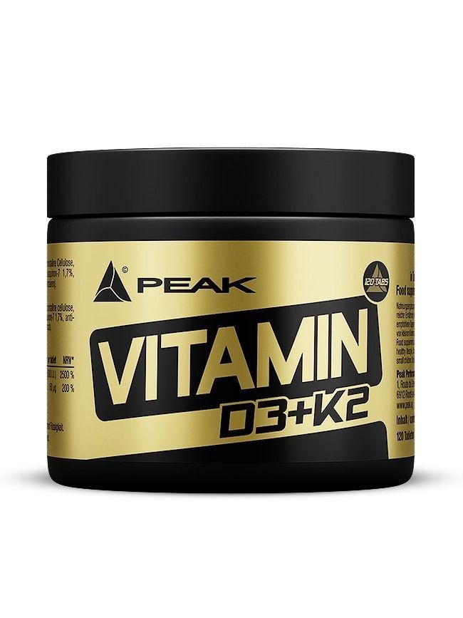 PEAK Vitamin D3+K2 120 Tabletten Vitamin D3+K2 von Peak Performance Products ist ein Nahrungsergänzungsmittel in Tablettenform. Vitamin D gehört zu den essentiellen (lebensnotwendigen) Vitaminen. Die Versorgung findet nicht über die Nahrung, sondern über die Sonneneinstrahlung statt. Deshalb wird Vi