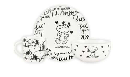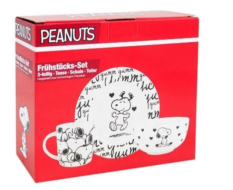 Peanuts Frühstücksset 3-teilig aus Porzellan - Teller, Tasse & Schale