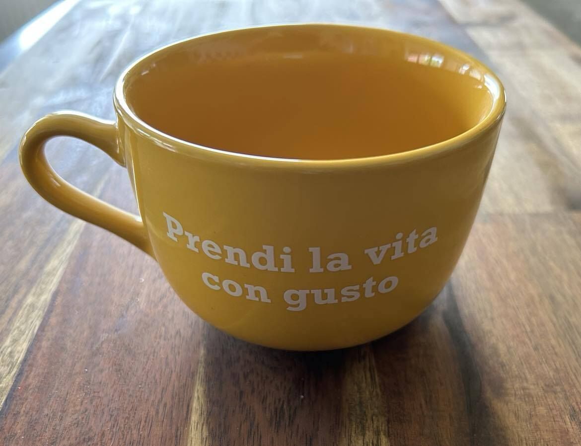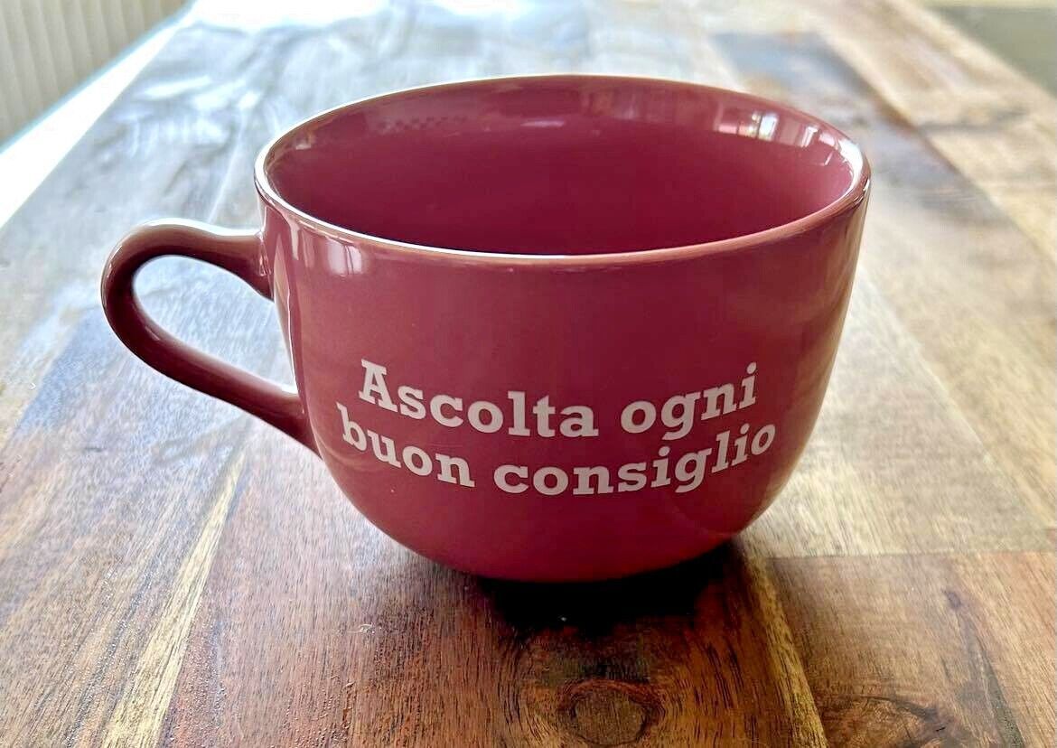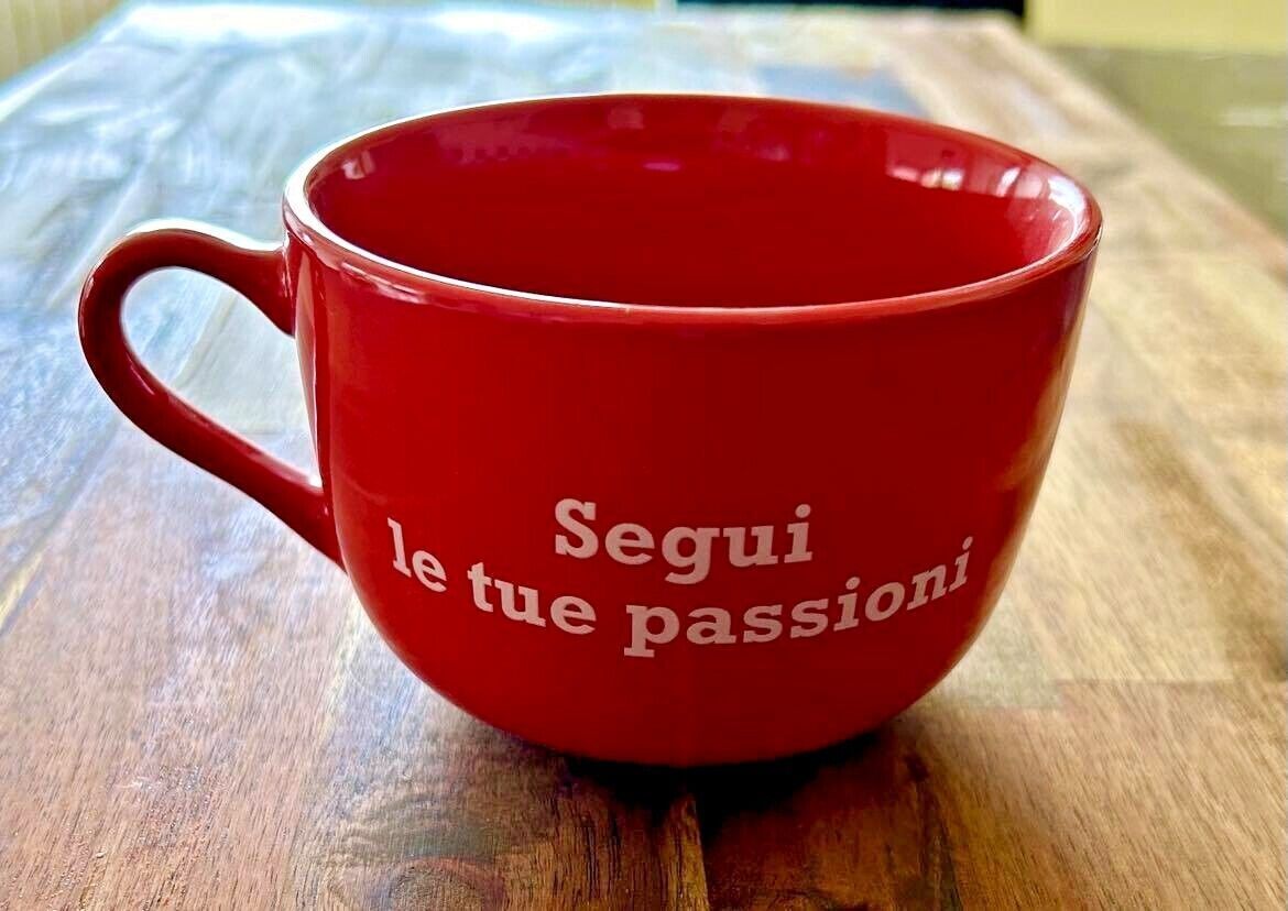 Peanuts - Snoopy Cappuccino Tassen Vorder + Rückseite bedruckt ( siehe Bilder ) 6 verschiedene Motive und Farben, mit unterschiedlichen italienischen Lebensweisheiten: Rot: Snoopy + Woodstock als Pfadfinder - Sequi le tue passion - Folge deinen Leidenschaften Gelb: Snoopy + Charlie Brown - Prendi la