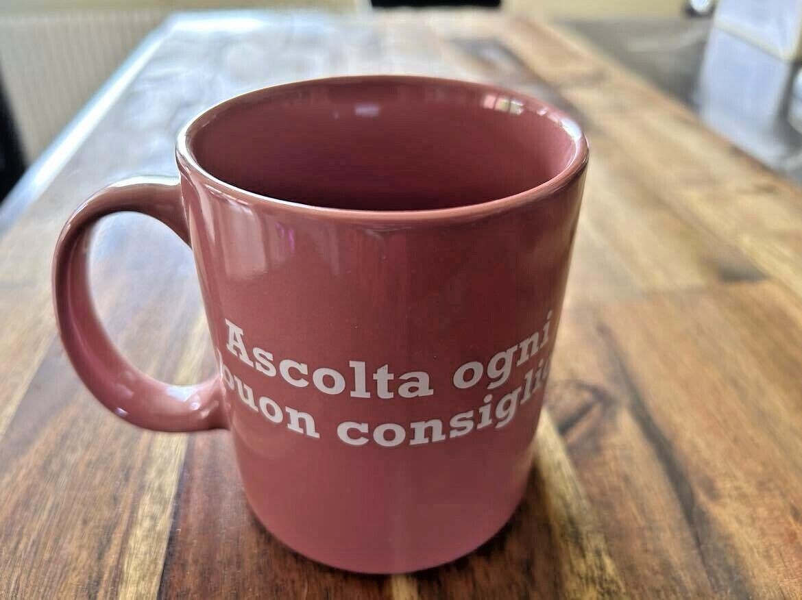 Peanuts - Snoopy Tassen Vorder + Rückseite bedruckt ( siehe Bilder ) 6 verschiedene Motive und Farben, mit unterschiedlichen italienischen Lebensweisheiten: Rot: Snoopy + Woodstock als Pfadfinder - Sequi le tue passion - Folge deinen Leidenschaften Gelb: Snoopy + Charlie Brown - Prendi la Vita con g