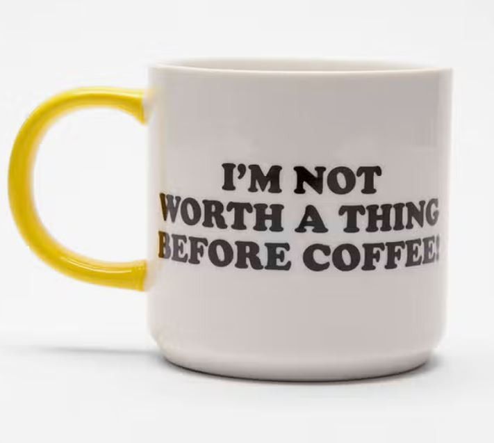 Peanuts Snoopy Tasse: I am not worth a thing before coffee - Porzellan Tasse 330 ML