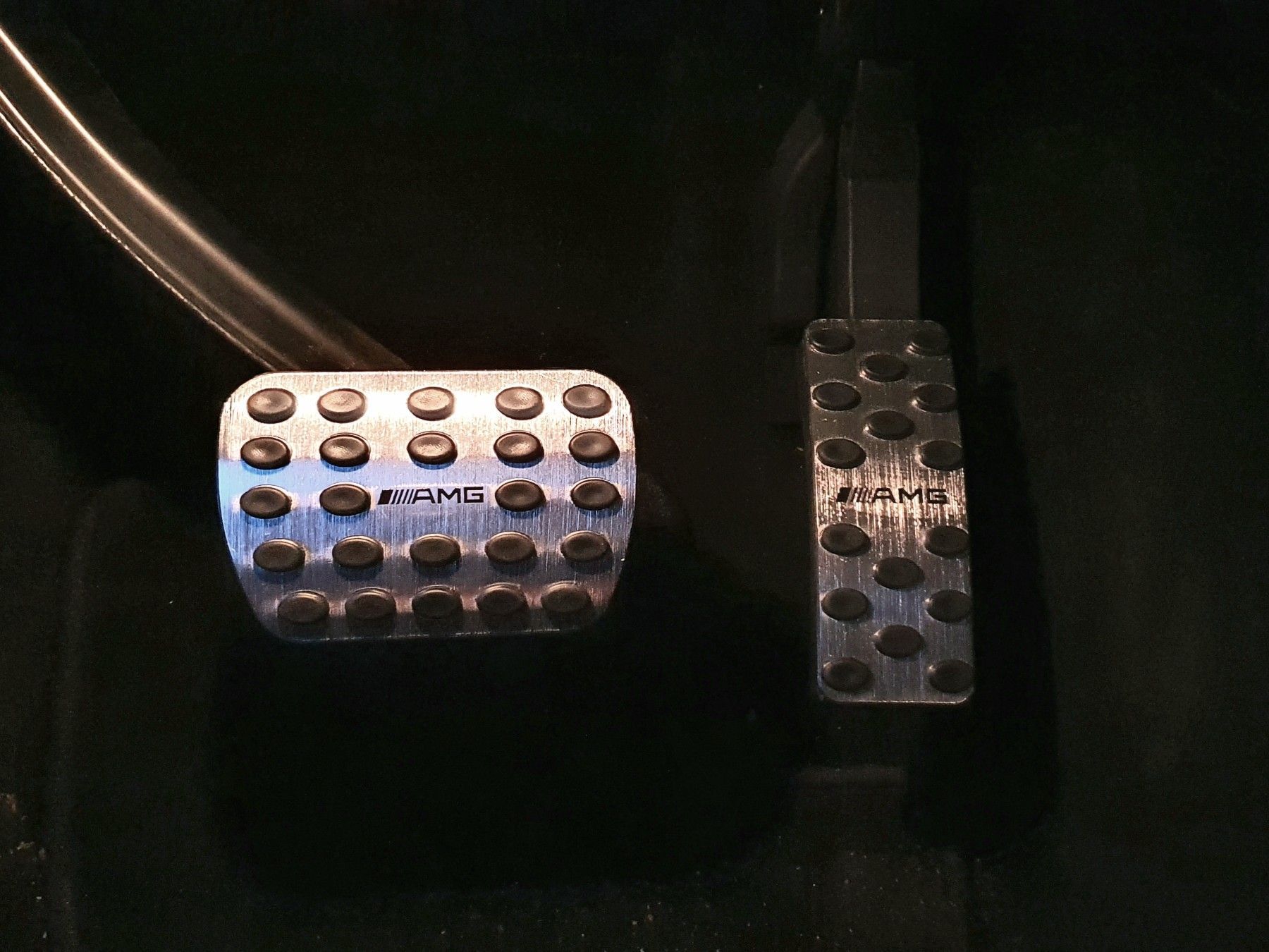 AMG Pedalen Set für Automatikgetriebe! Das Set besteht aus: 1x Gaspedal 1x Bremspedal 1x Fußbremse Handbremse + Ohne bohren ohne Schrauben! + Hohe Qualität + Das AMG Logo ist eingefräst und mit Farbe versehen. + Material: Gummi Aluminium gebürstet + Pedalen werden gegen Original Gummis ersetzt, Gasp