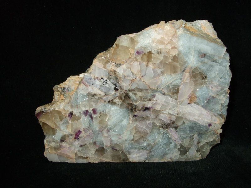 Pegmatit: Lepidolith, Quarz, Kunzit Anschliff (Madagaskar)-Mineralien-