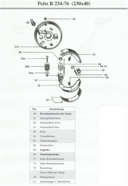 Peitz / BPW Anhänger Ersatzteil - Bremsbackenset R234-76 SBA827-4 230x40 - AV10-4230
