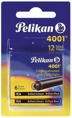 • Pelikan 330803 Tintenpatrone 4001® TP/6 - brillant-schwarz, Blister mit 2 Etuis a 6 P