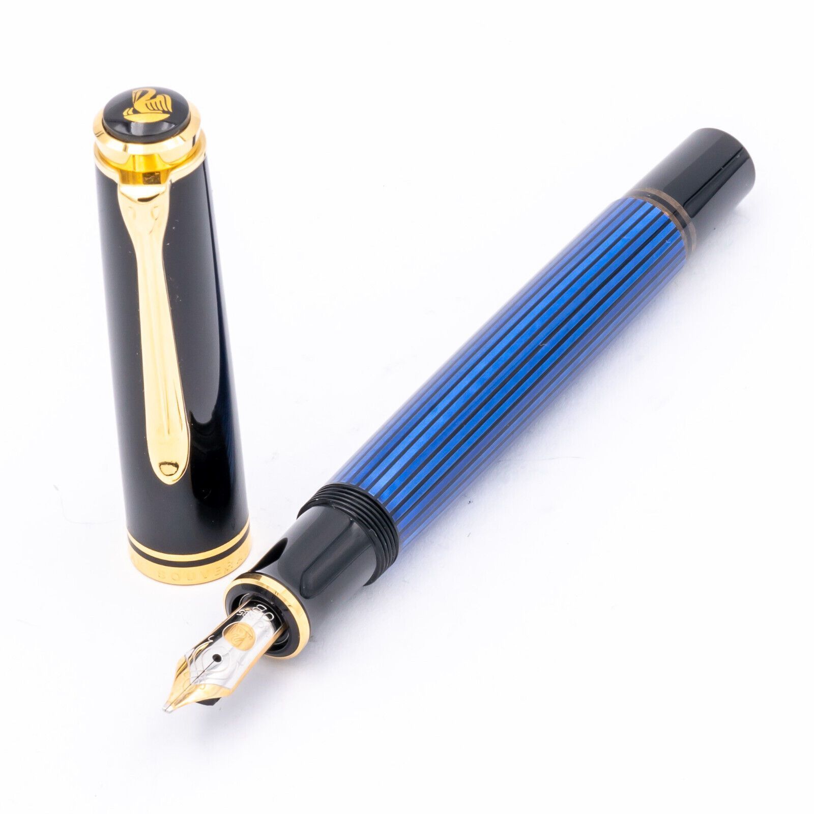 Pelikan Souverän M405 Kolben-Füller Blau Silber 14K B NOS