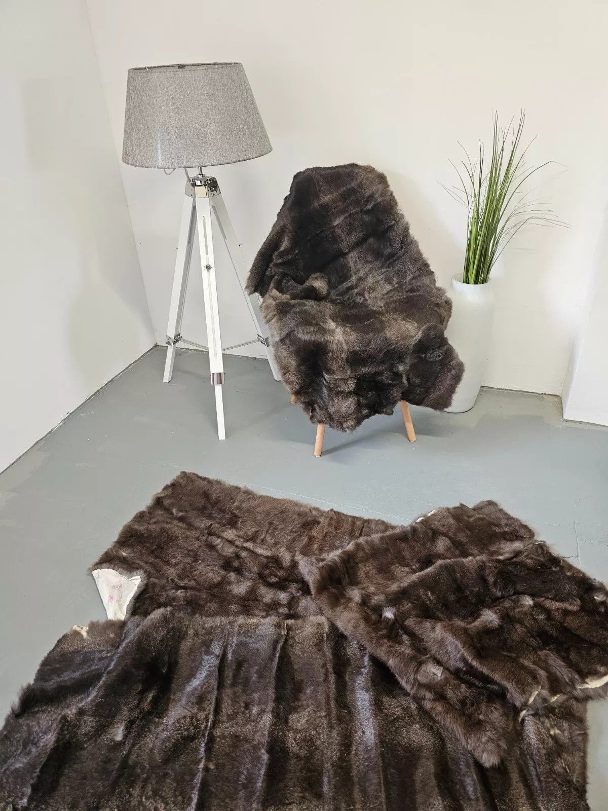 Pelzdecke Kaninchenpelz Felltafel Kaninchenfell Naturfarben 120x60cm