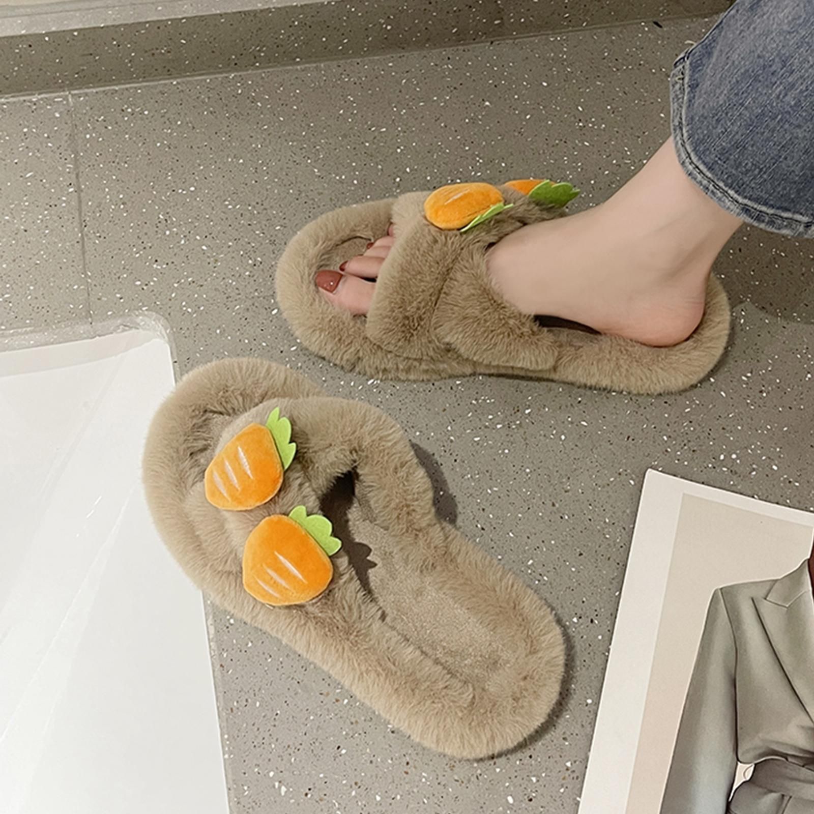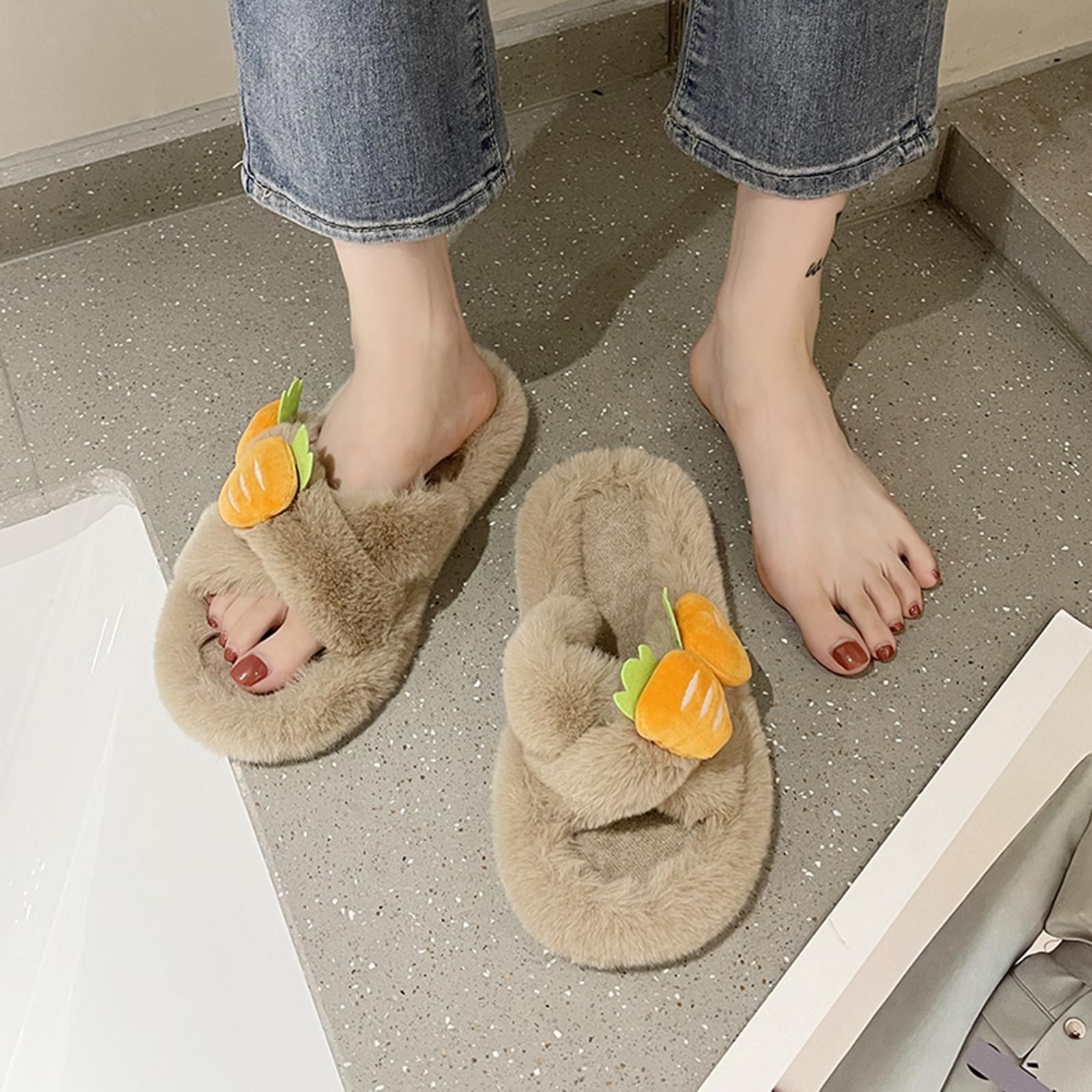 Pelzige Hausschuhe fur Damen, Schlafzimmer, rutschfest, bequem, gefuttert,